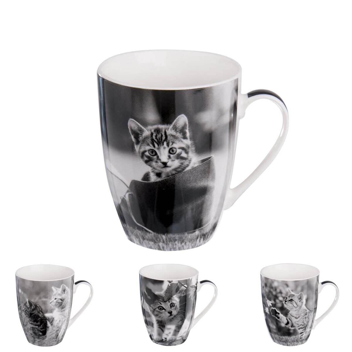 Jestliže sháníte dárek pro milovníky koček, zkuste jim darovat tento krásný porcelánový hrnek. Fotografie roztomilých koťátek zajisté potěší každou spřízněnou duši těchto čtyřnohých mazlíčků.