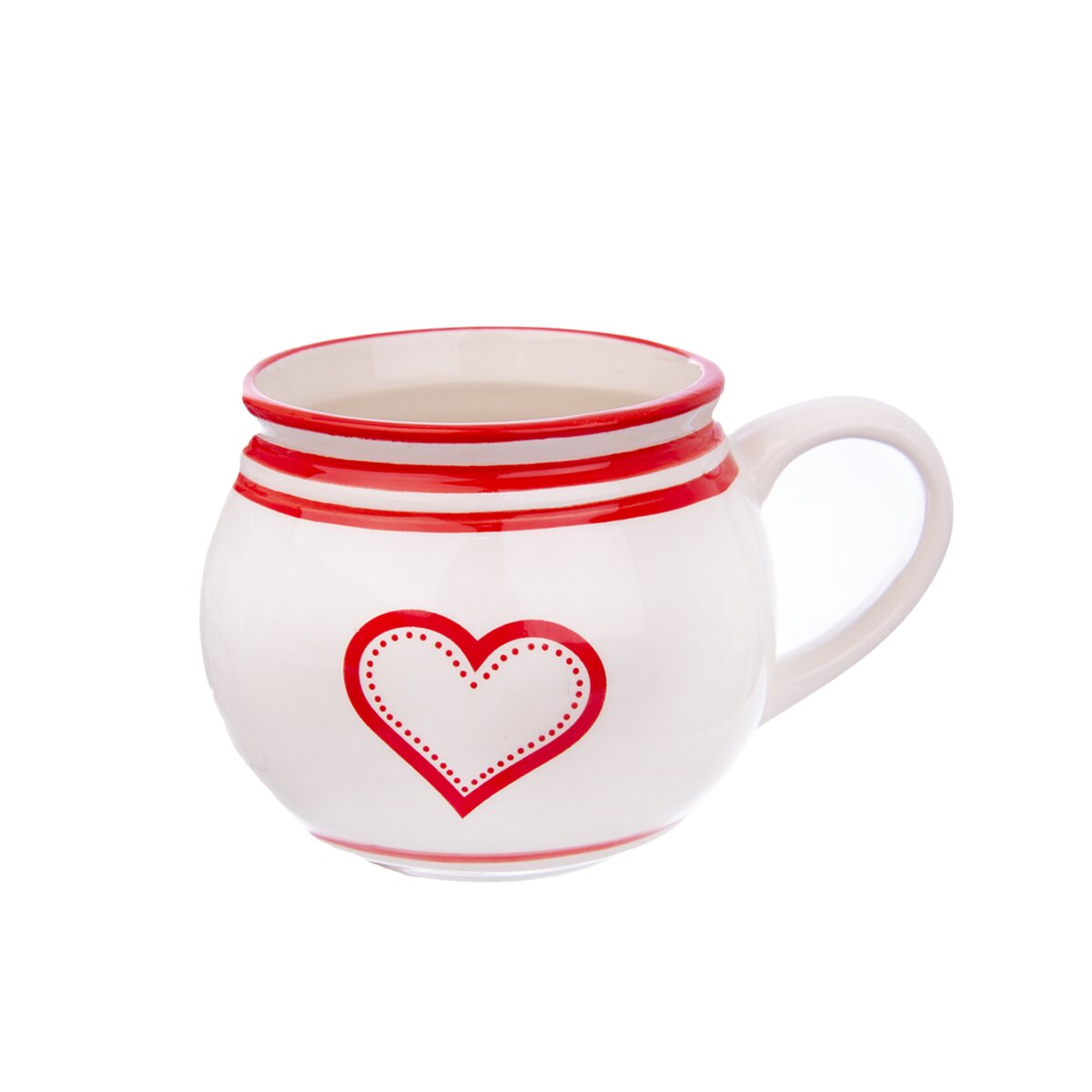 Na kakao, horkou čokoládu, čaj či kávu. Tento keramický bucláček z kolekce KRAJÁČ s červeným srdcem a lemovaným okrajem se hodí nejen do interiérů chat a chalup, ale i moderních kuchyní. Objem hrnku je 450 ml.