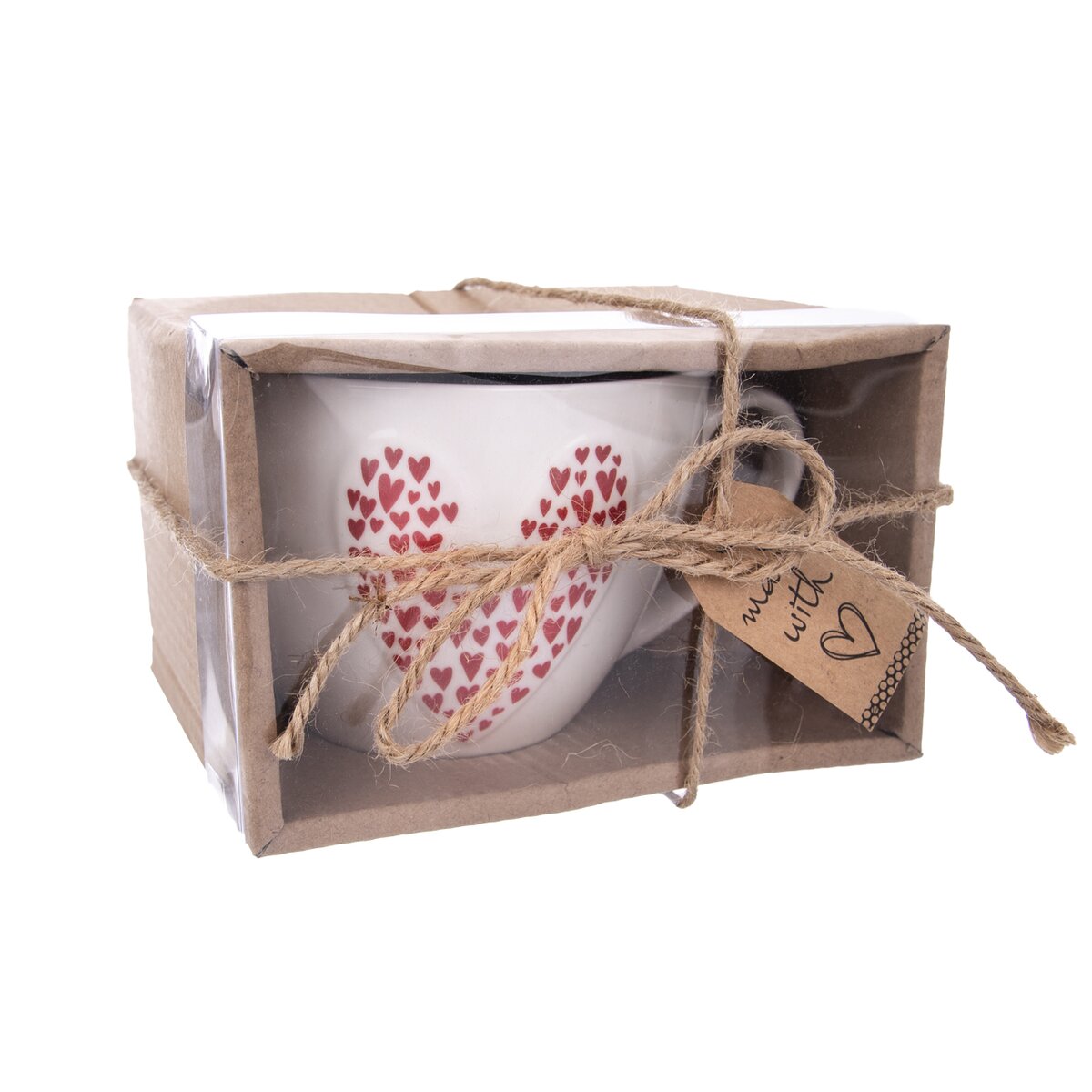 Vychutnejte si váš oblíbený druh kávy nebo čaje v tomto krásném porcelánovém hrnku. Vyznačuje se roztomilým dekorem červených srdíček a objemem 490 ml.