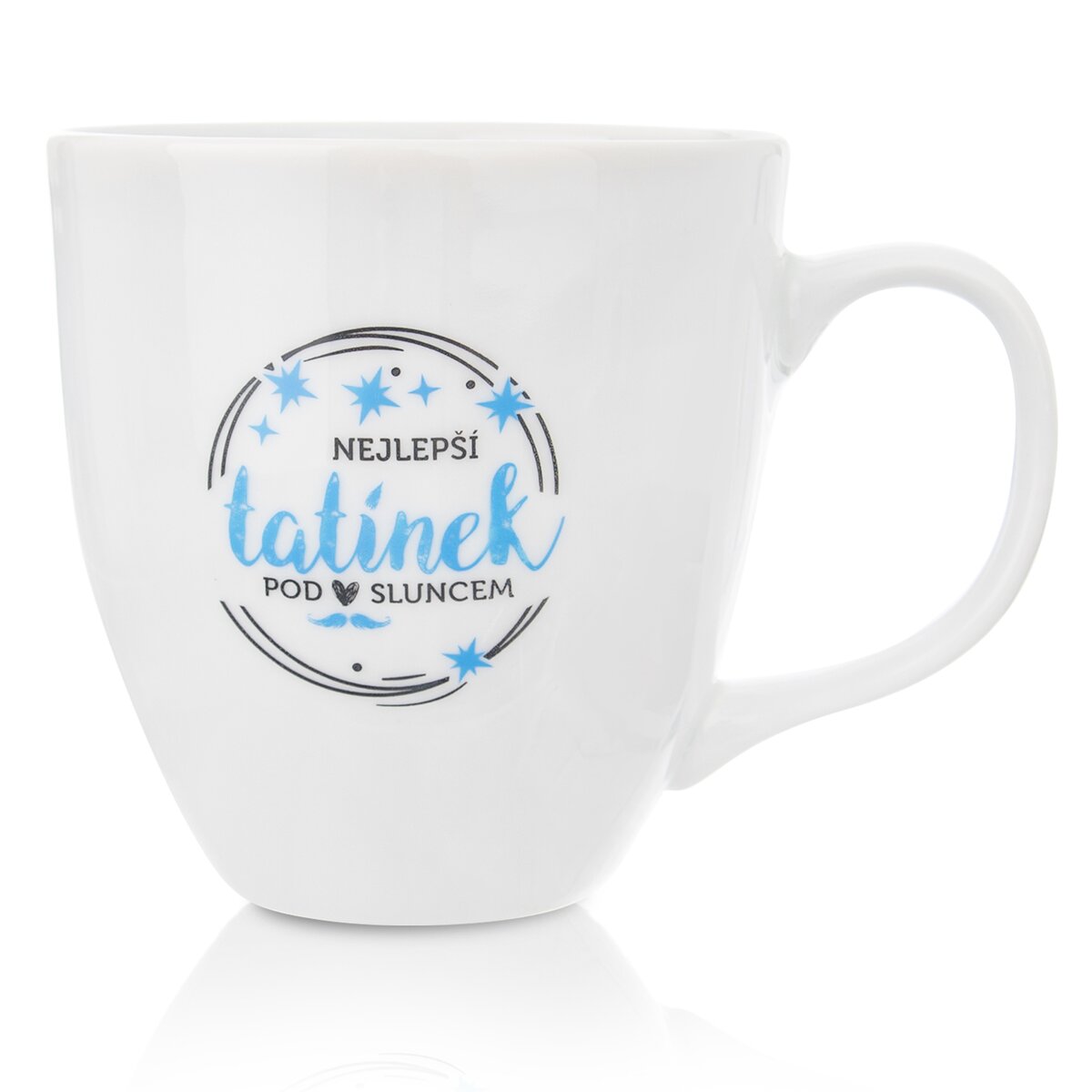 Kód produktu 128850Bílý porcelánový hrnek o objemu 470 ml s nápisem NEJLEPŠÍ TATÍNEK POD SLUNCEM.