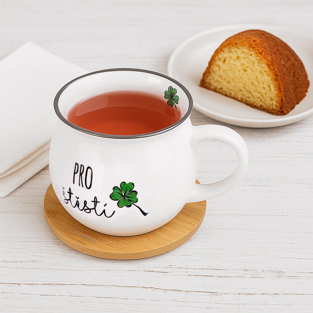 Více informacíRáno bude pohodovější, když své drahé polovičce nebo sami sobě naservírujete hezký hrnek s nápisem "Pro štěstí", doplněný čtyřlístky. Originální potisk se z dílny našich designérů vykouzlí úsměv na tváři každému, navíc pokud v něm je váš oblíbený nápoj, horká káva s mlékem, čaj, kakao nebo svařené víno, které zahřeje za chladných zimních večerů.