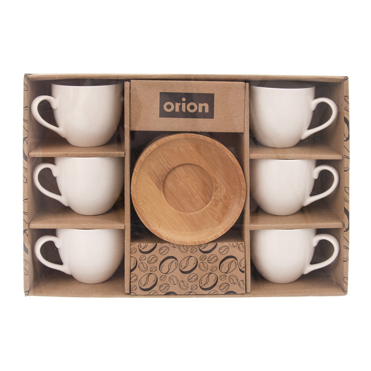 Tvoří jej šest bílých porcelánových hrnečků, do kterých se díky objemu 125 ml vejde vaše oblíbená káva nebo menší dávka čaje a šest podšálků z bambusového dřeva.