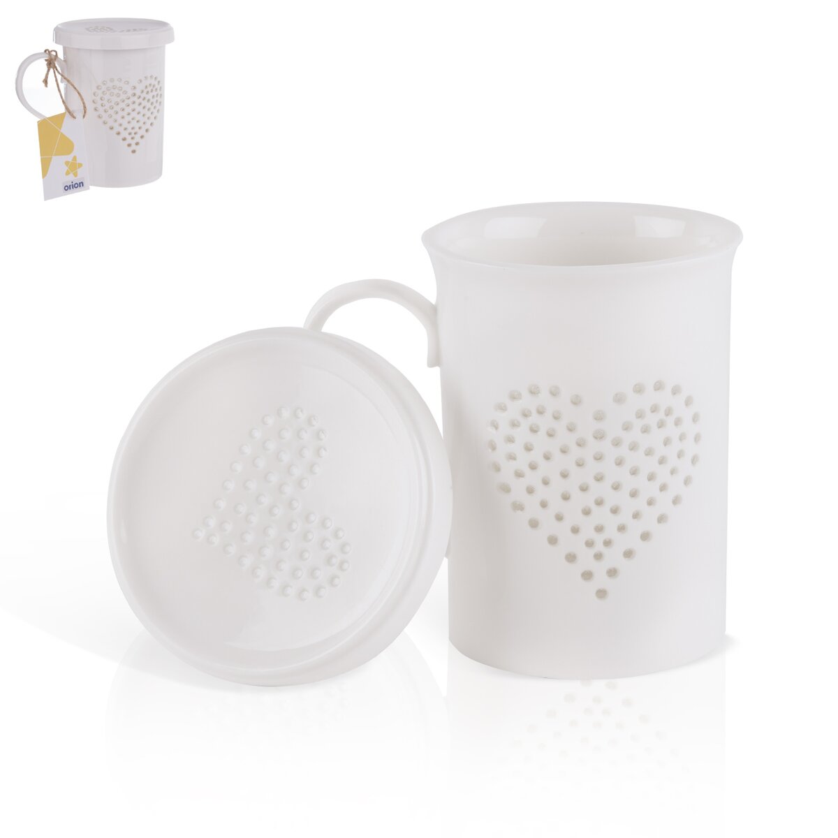 Kód produktu 127208Hrnek se zajímavým dekorem. Poklička může sloužit také jako podtácek na sáček s vylouhovaným čajem. Materiál: porcelán. Rozměry: objem 0,42 l, pr. 8 cm, v. 11 cm.