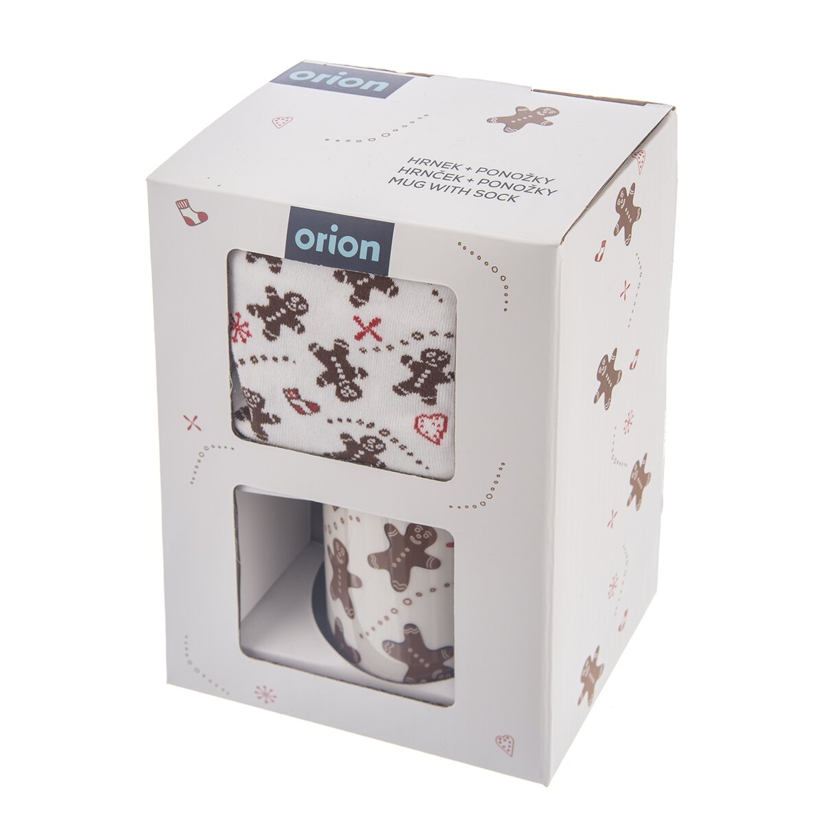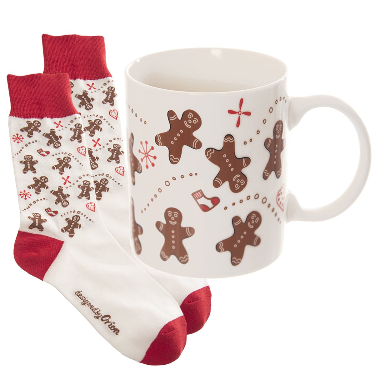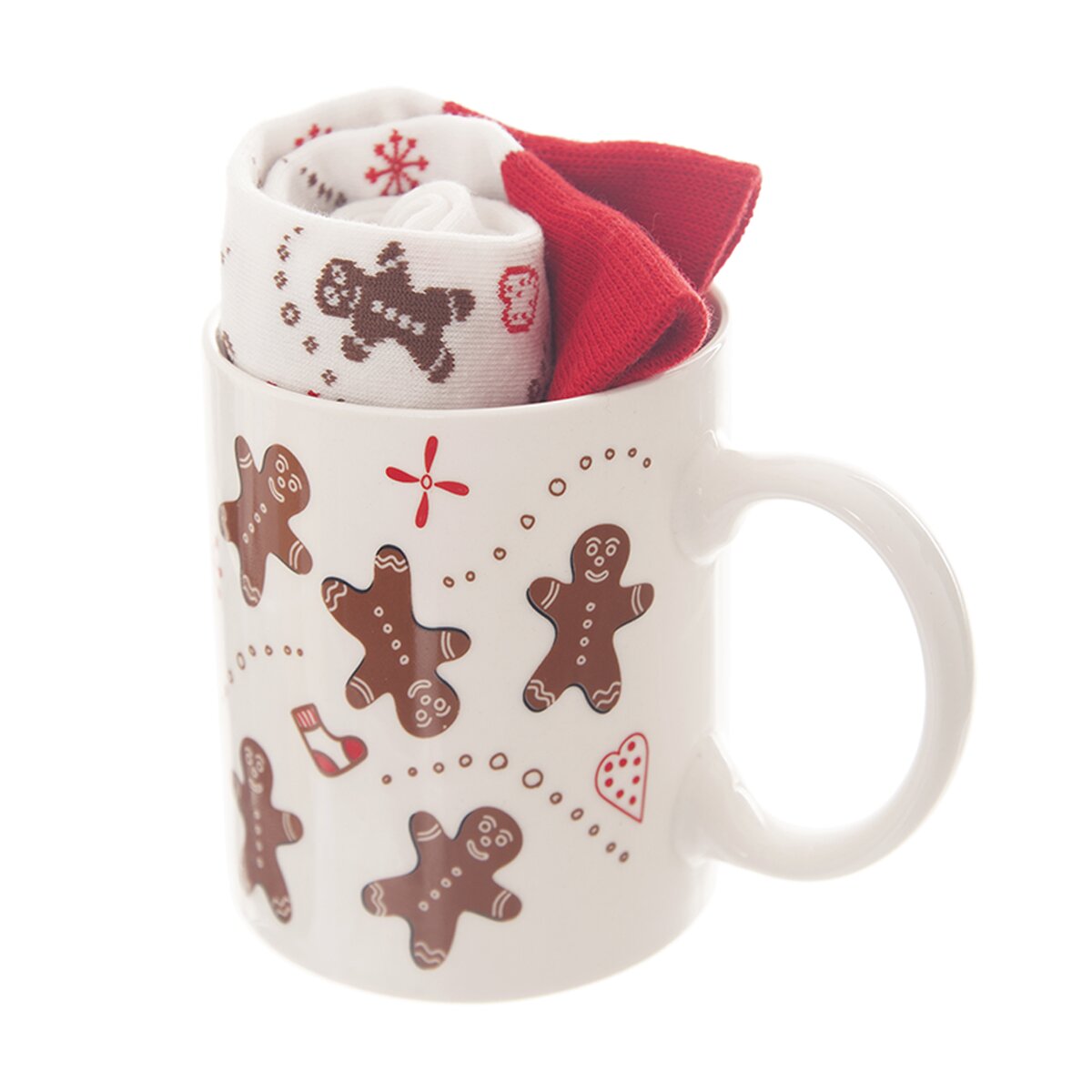 Kód produktu 129469Keramický hrnek o objemu 0,35 l v sadě s veselými ponožkami velikosti 42-45. Zdobí je motiv roztomilých perníčků.