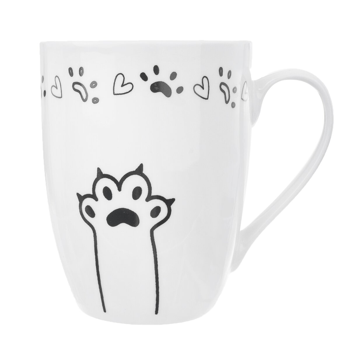 Kód produktu 128848Keramický hrnek objemu 0,38 l s motivem kočičích tlapek, doplněný o nerezovou metličku a roztomilou plyšovou kočičku, uloženou v dárkovém balení.