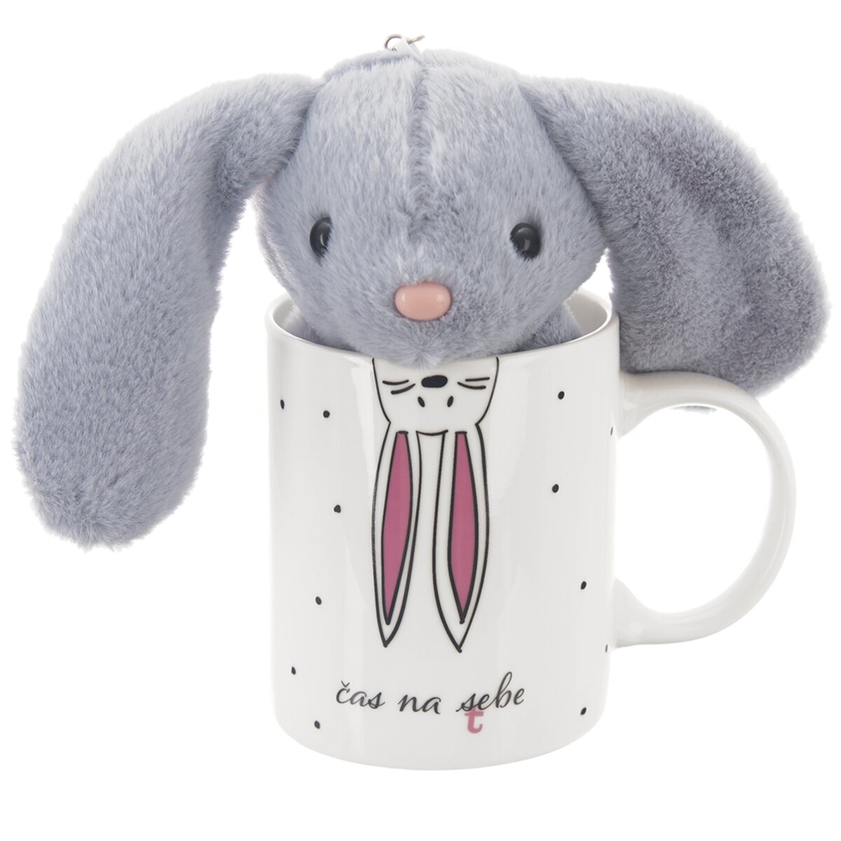 Více informacíBílý porcelánový hrneček zbobí hezký potisk vykukujícího zajíčka a dvojznačný nápis "čas na s(t)ebe". Z takového hrnečku se bude dobře pít, má objem 390 ml a šikovné ouško, za které se dobře drží. Navíc v něj je vložen hóóódně ušatý zajíček, takže se hrneček může stát i roztomilým dárkem pro vaše blízké a přátele.