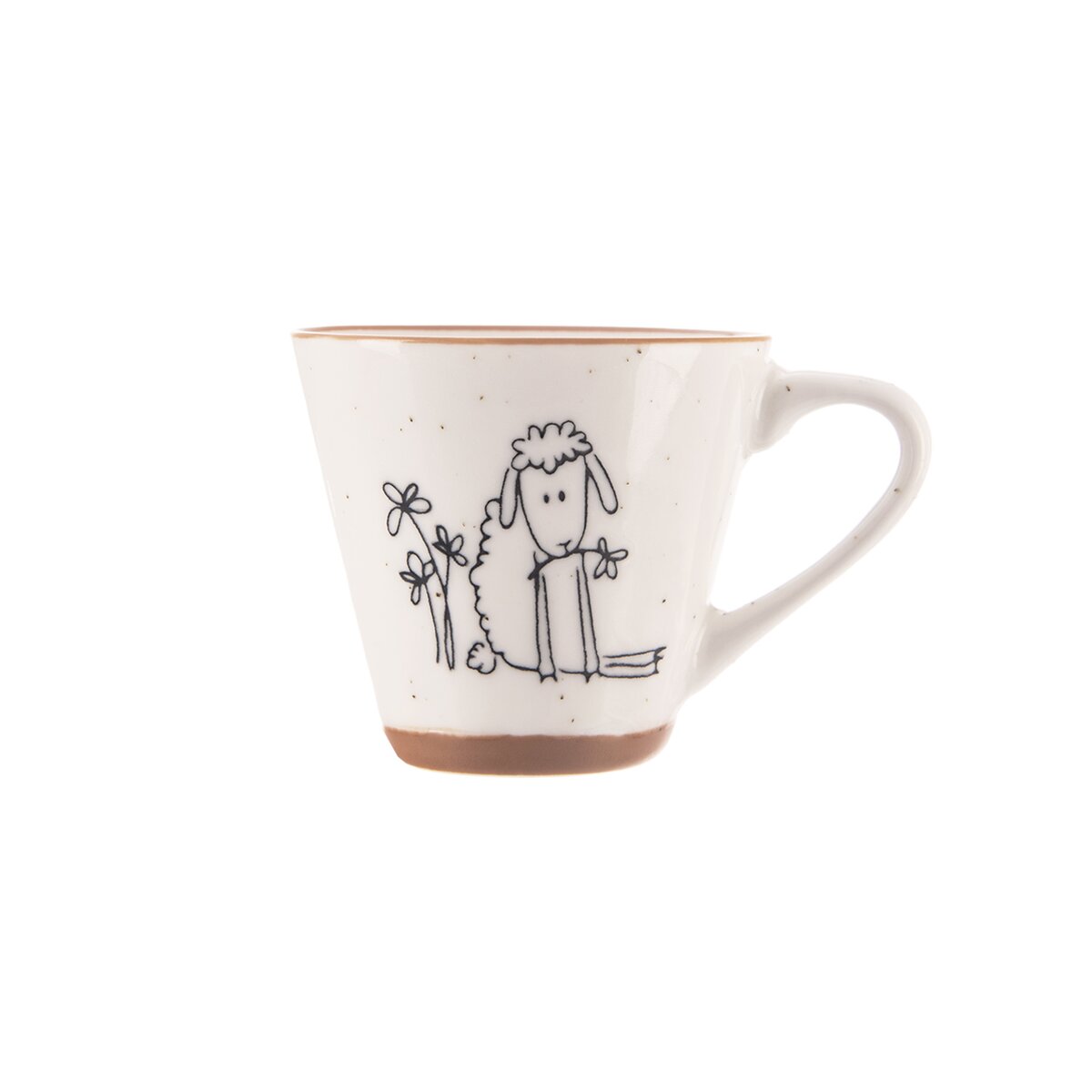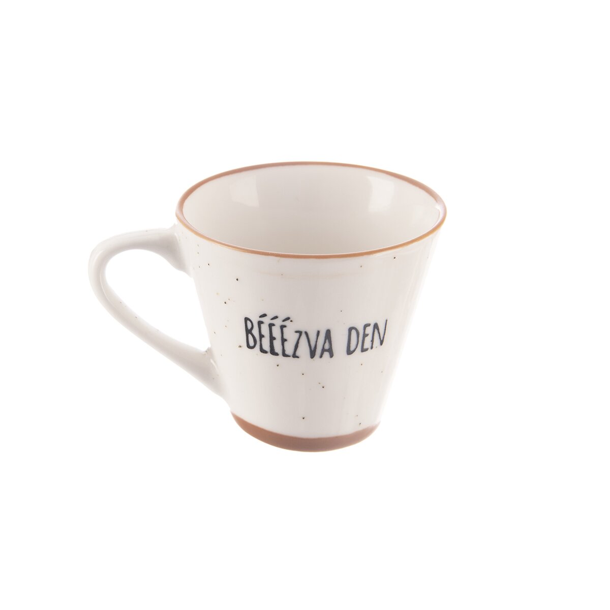 Kód produktu 129651Porcelánový hrneček na kávu o objemu 0,07 l zdobí kresba ovečky a originální nápis "BÉÉÉzva den".