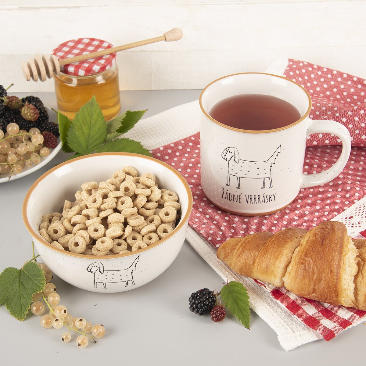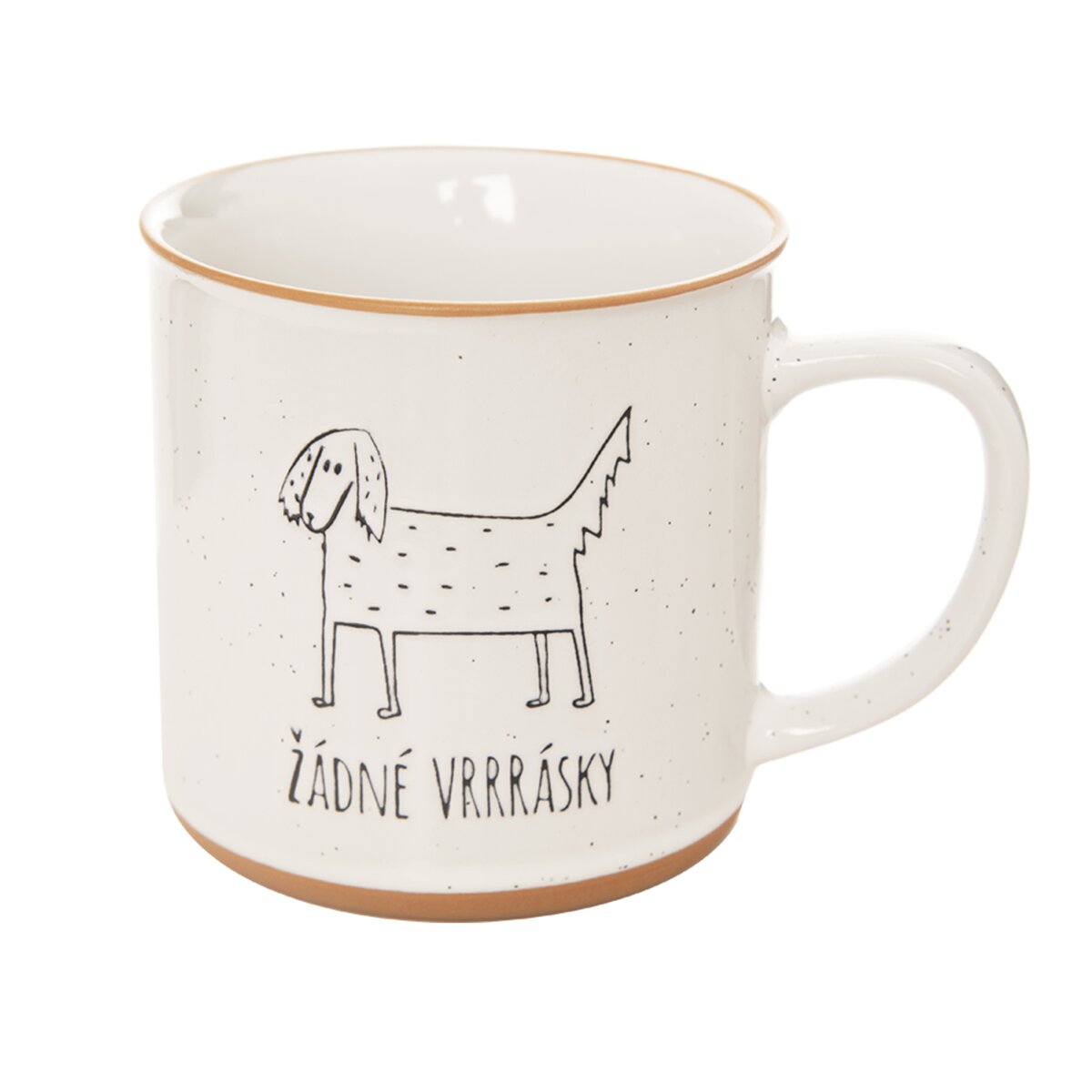Kód produktu 129481Keramický hrnek o objemu 0,53 l zdobí kresba psa a originální nápis s vtipem "Žádné VRRRásky".