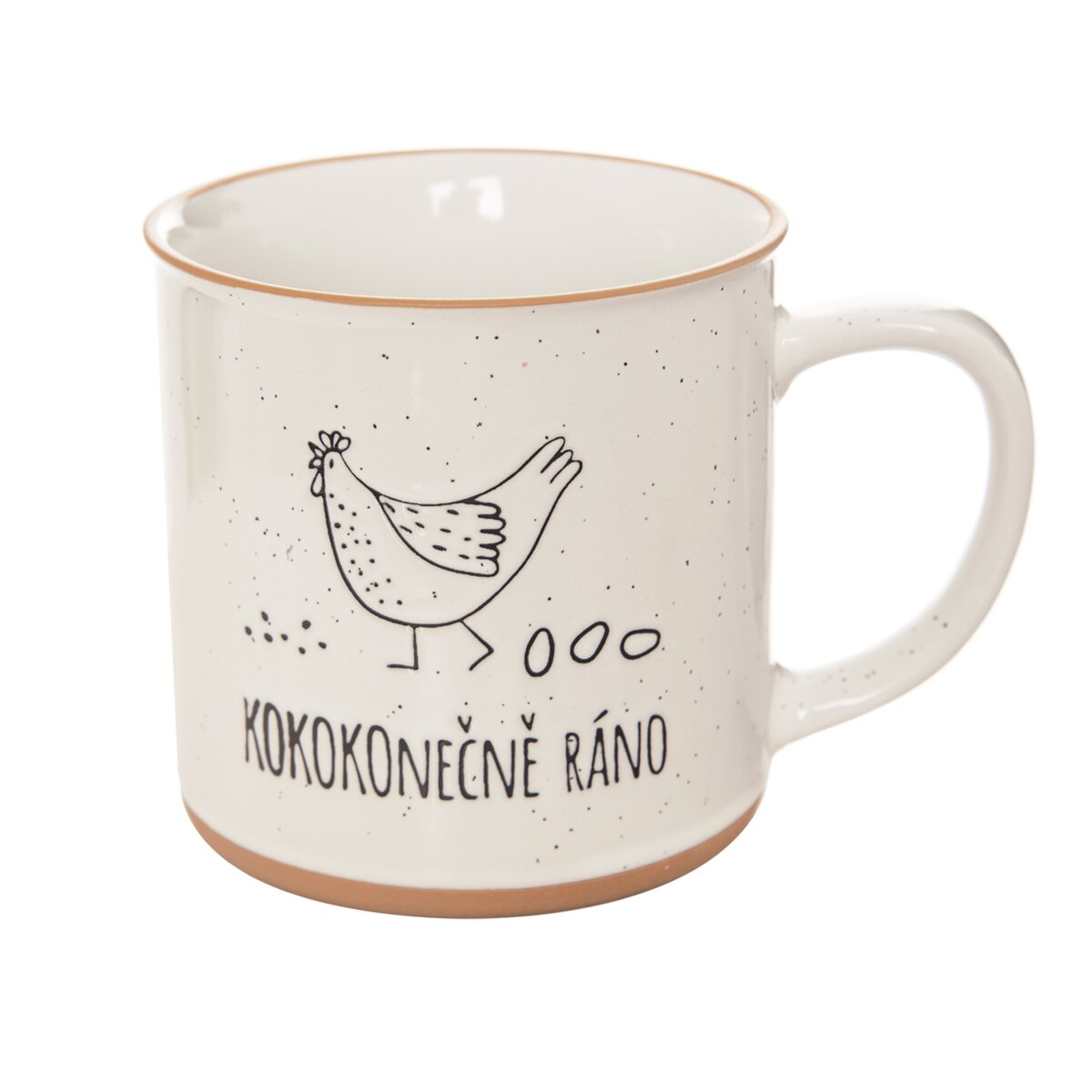 Kód produktu 129482Keramický hrnek o objemu 0,53 l zdobí kresba slepičky a originální nápis s vtipem "KOKOKOnečně ráno".