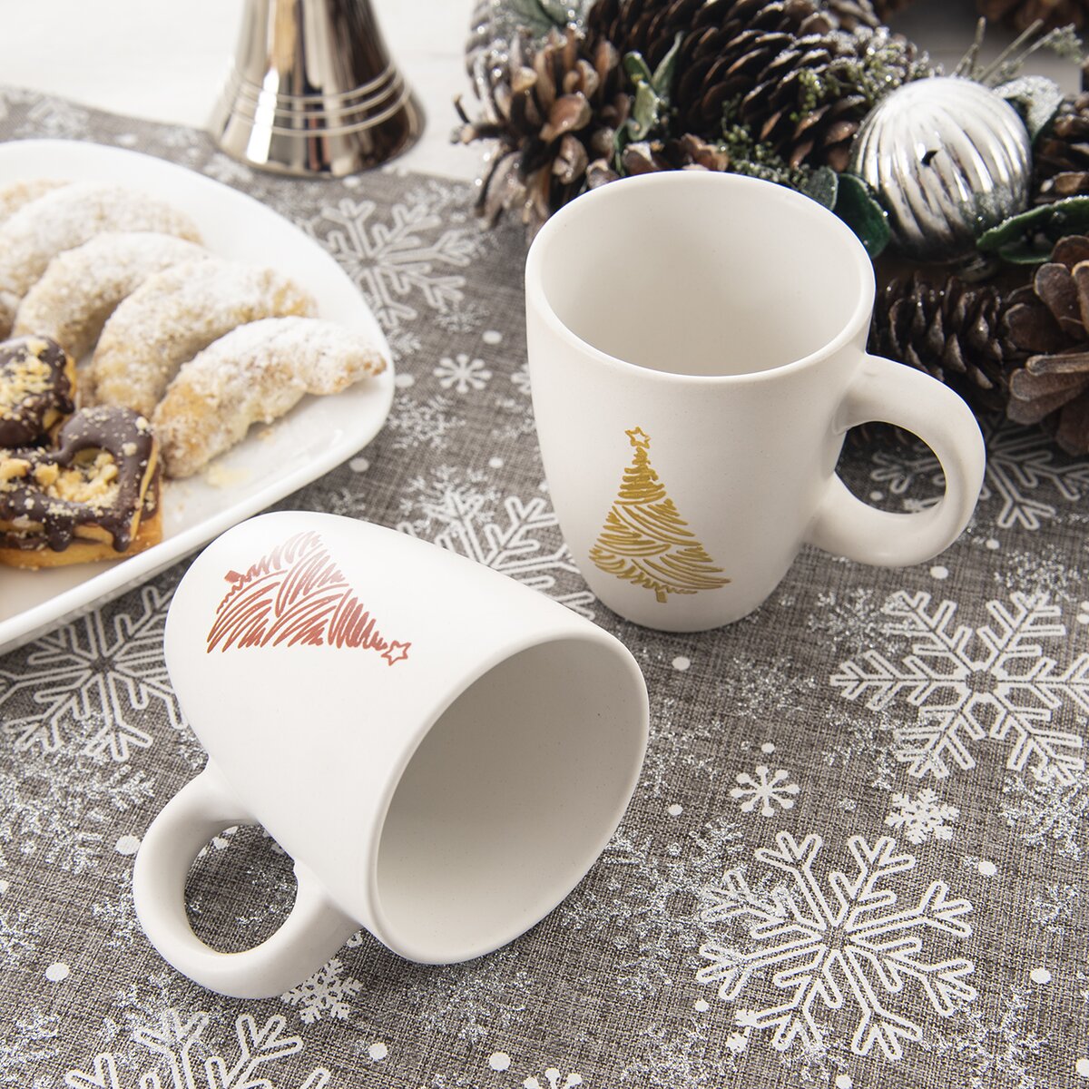 Kód produktu 128818Sada dvou keramických hrnků o objemu 0,14 l s dekorem vánočních stromků.