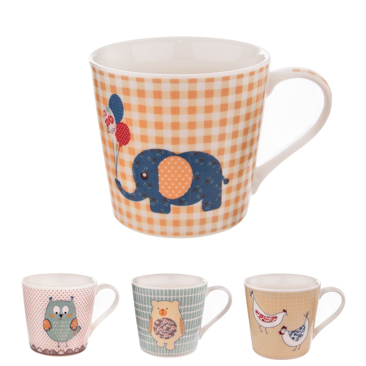 Hrnek s uchem s dekorem. Materiál: porcelán. Vhodný do myčky i MVT. Rozměry: objem 0,44 l, pr. 10 cm, v. 9 cm.