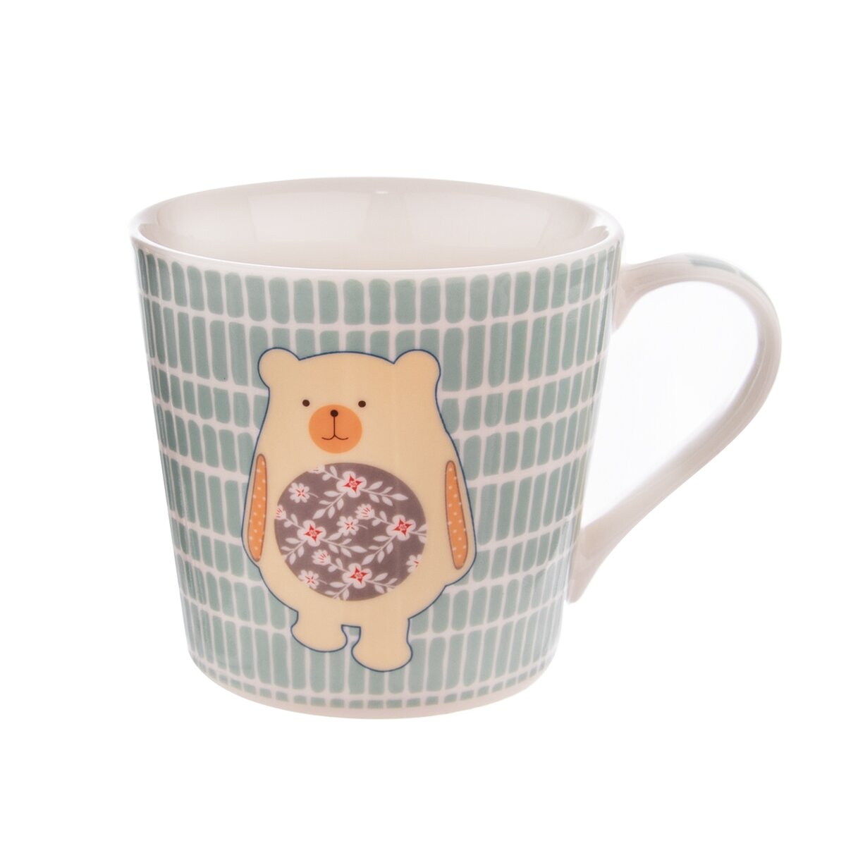 Kód produktu 127238Hrnek s uchem s dekorem. Materiál: porcelán. Vhodný do myčky i MVT. Rozměry: objem 0,44 l, pr. 10 cm, v. 9 cm.