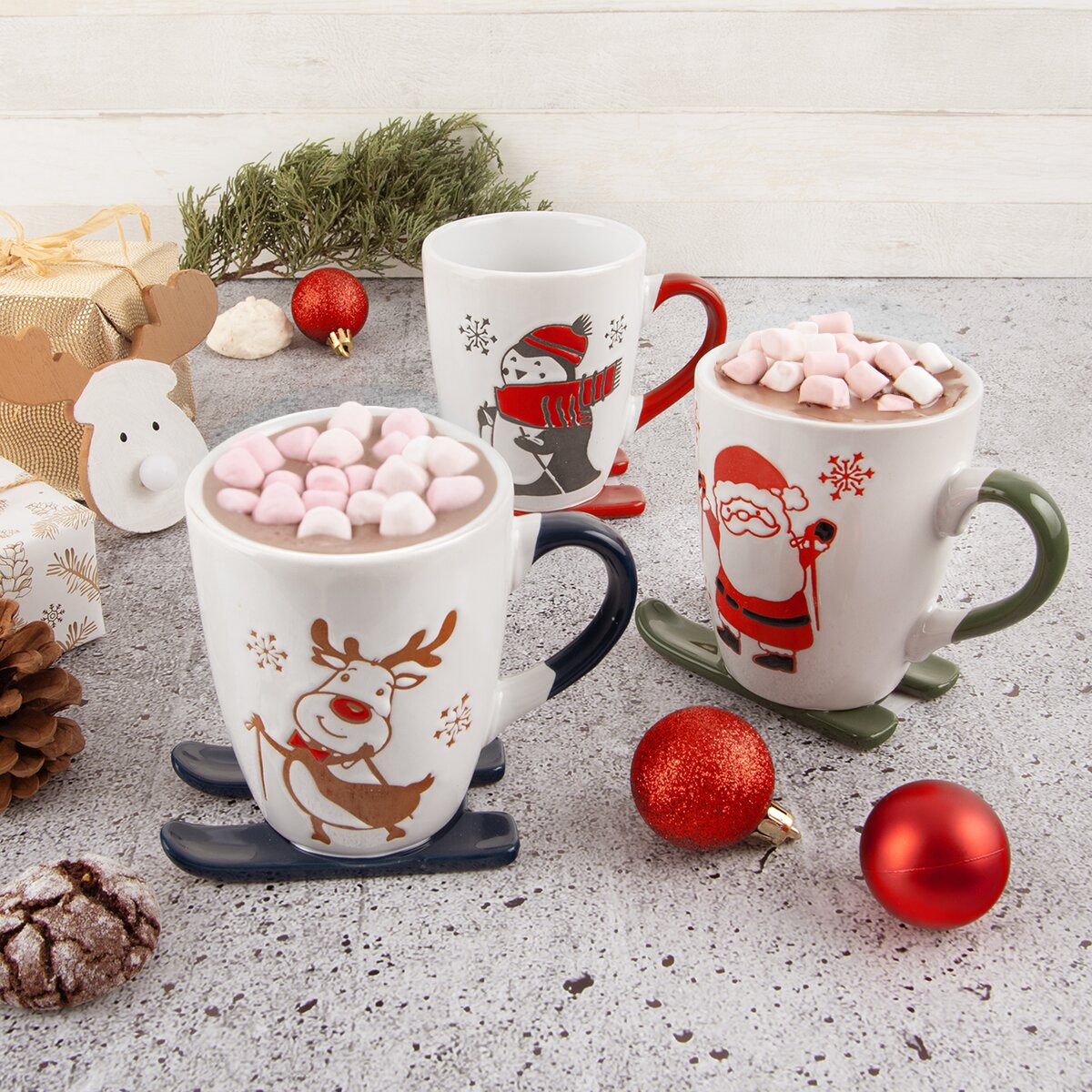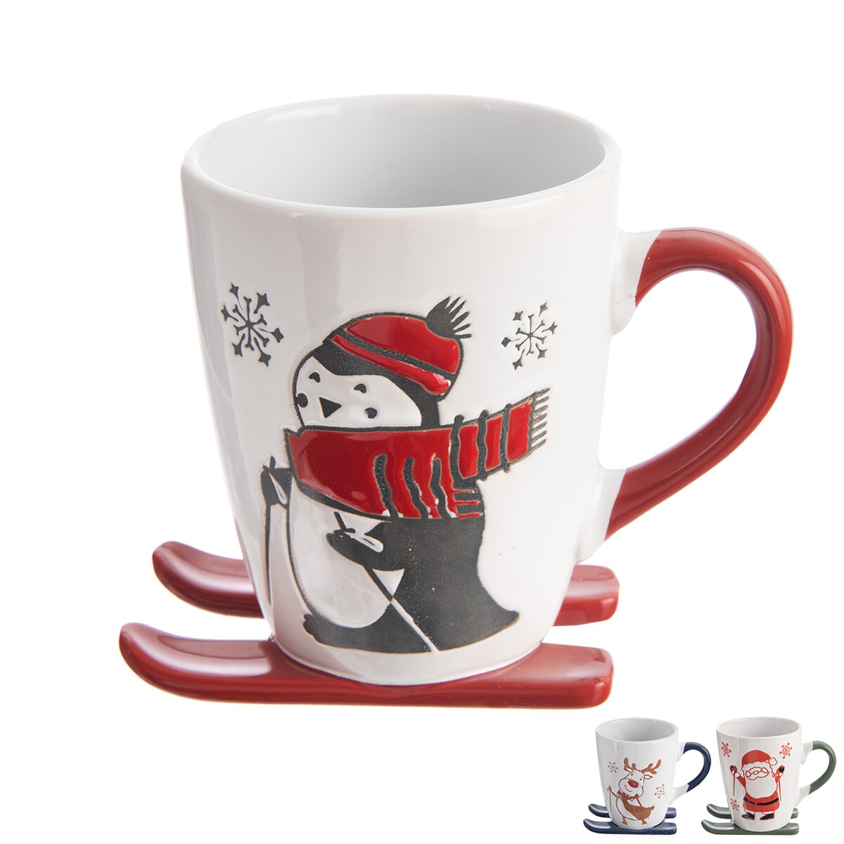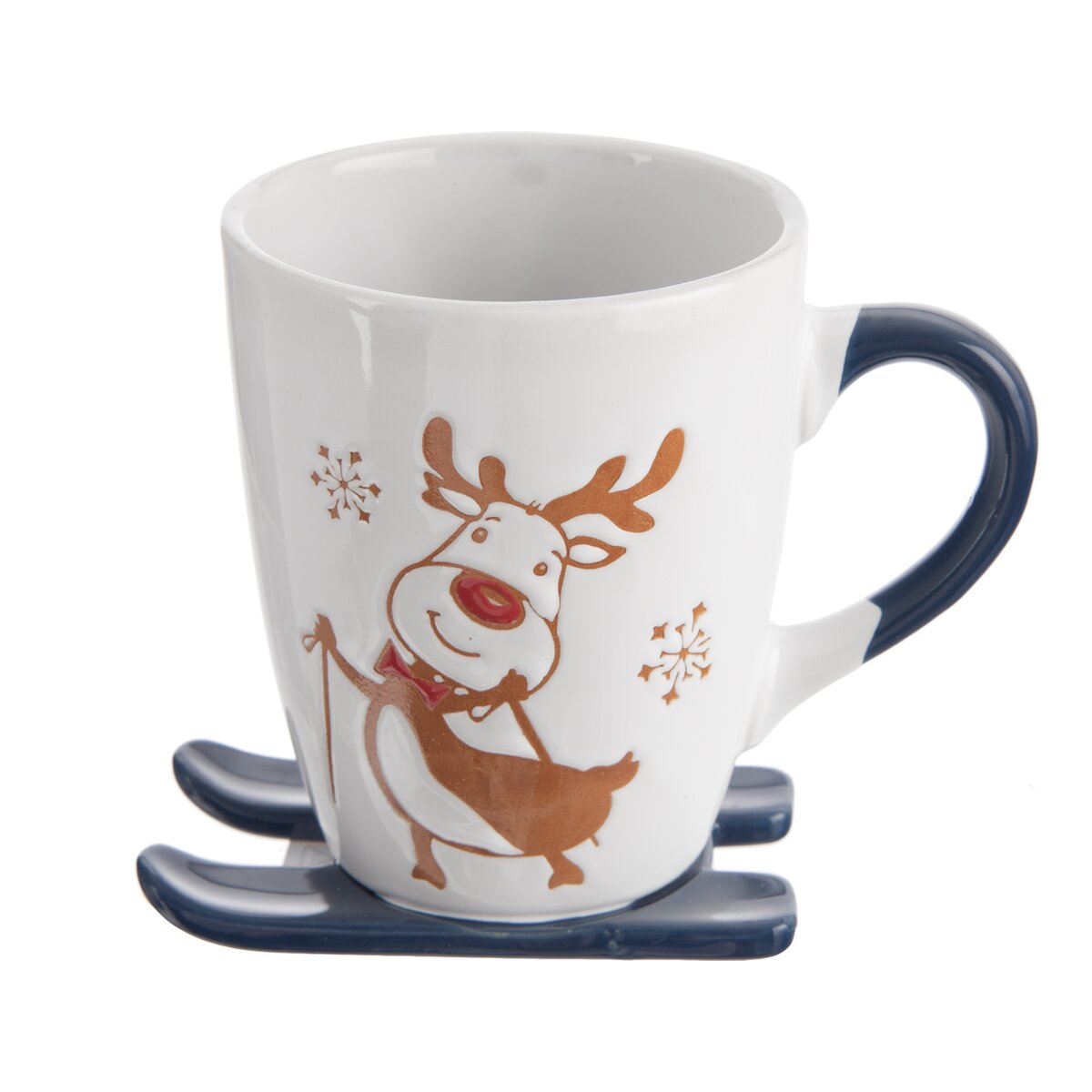 Kód produktu 129677Kameninový hrnek s roztomilým zimním dekorem a lyžemi má objem 0,33 l a hodí se k servírování čaje, kávy i kakaa.