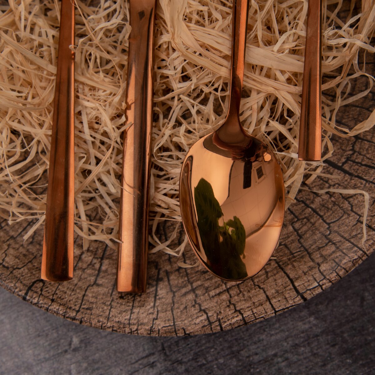 Kód produktu 143695Kvalitní nerezové příbory COPPER s měděnou povrchovou úpravou a s elegantně prohnutým nožem pro každodenní používání i slavnostní události. Jsou velmi atraktivní a přinášejí punc luxusu.