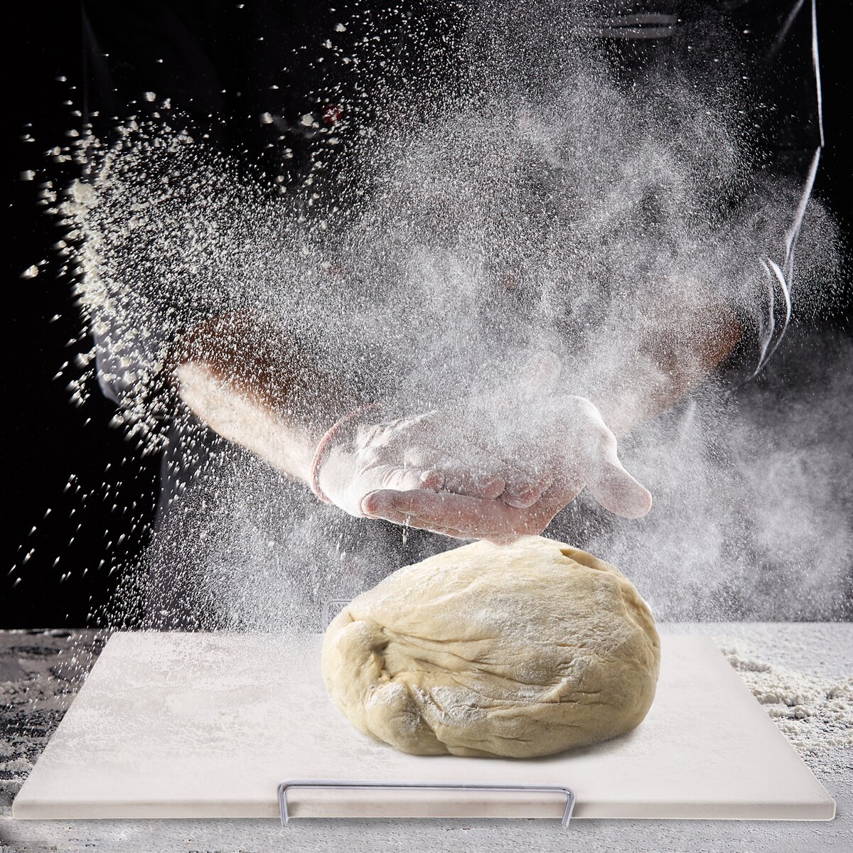 Součástí je i drátěný podstavec s praktickými rukojeťmi, které zajistí snadnější manipulaci, i když je kámen rozpálený. Vhodný do elektrické, horkovzdušné i plynové trouby do 250 °C, samotný kámen snese teplotu až do 800 °C.