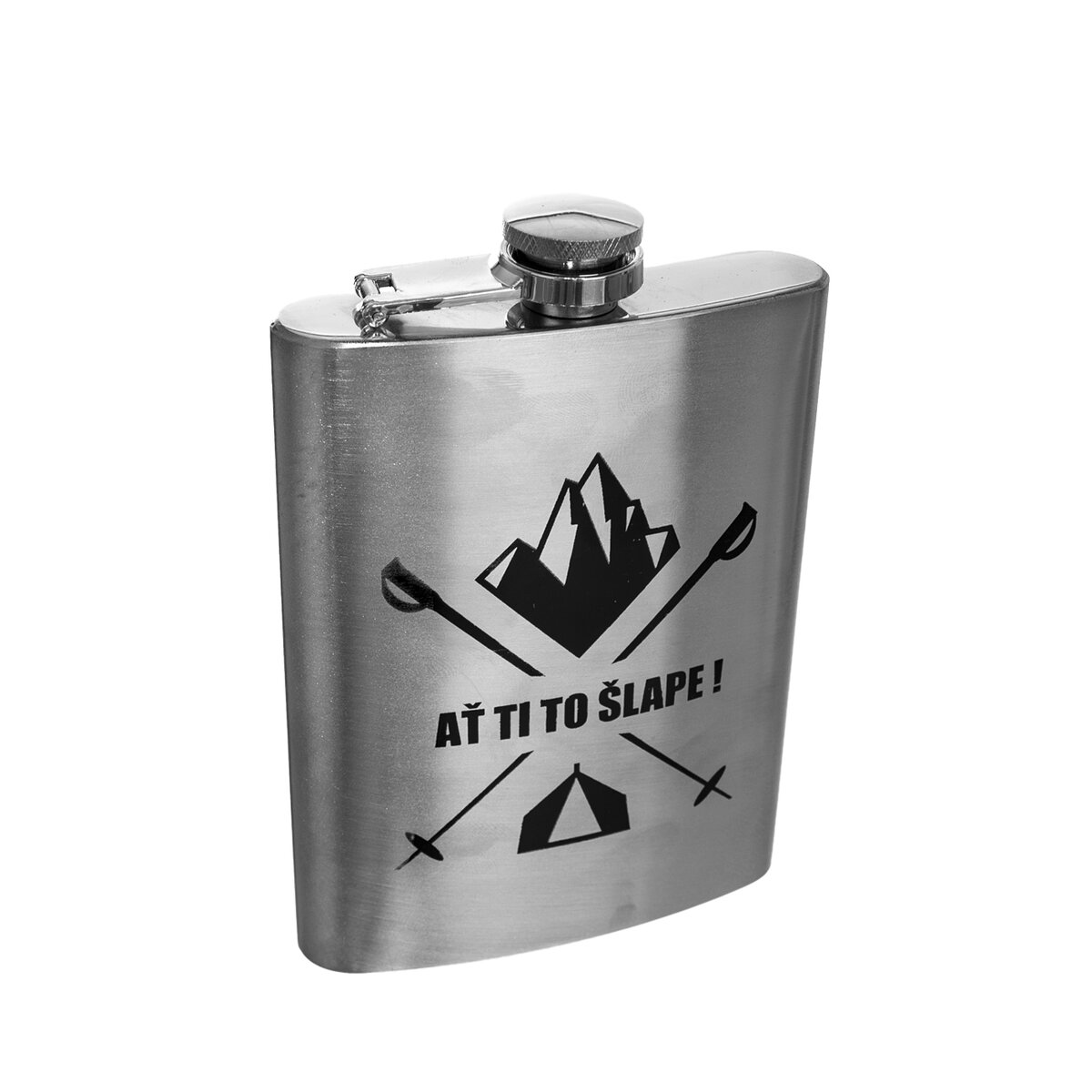 Kód produktu 125996Nerezová kapesní láhev o objemu 0,24 l s dekorem AŤ TI TO ŠLAPE.