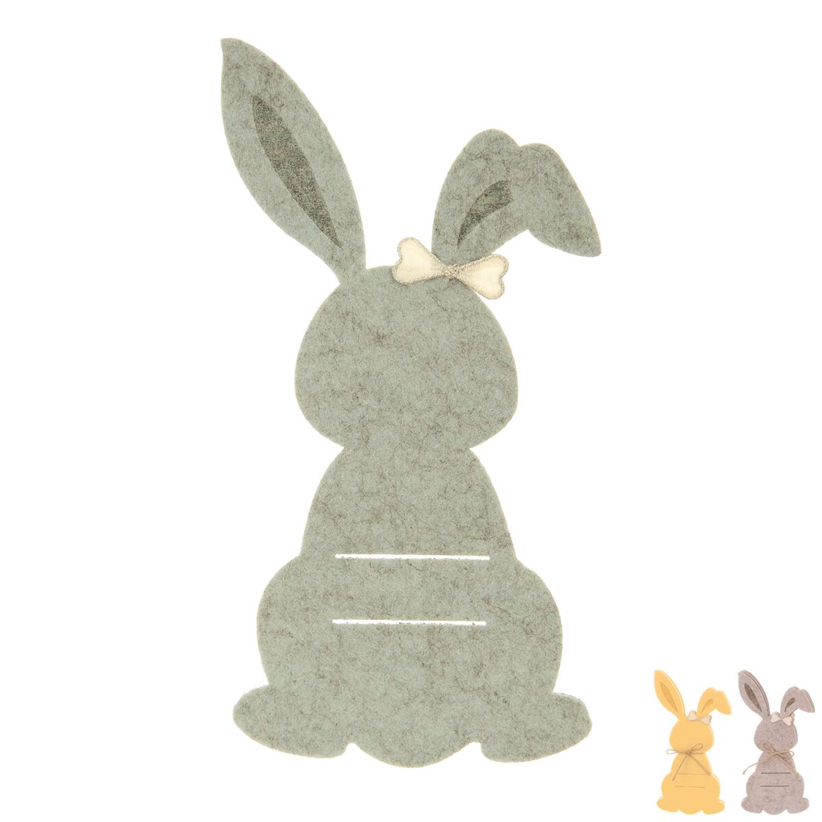 Kód produktu 728079Sada 4 kusů filcových kapes v příjemném tlumeném odstínu ozdobí prostřený stůl především v době Velikonoc. Tvar zajíčka a 2 proseknuté otvory umožní jednoduché vložení příborů.
