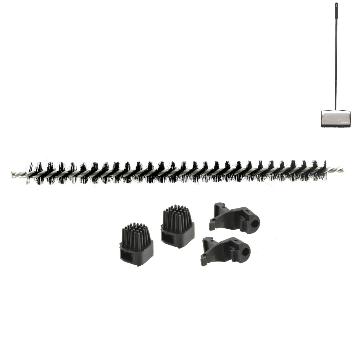 Malý náhradní kartáč včetně postranních úchytů je určen do zametače QUICK FLOOR, který díky systému rotačních kartáčů mechanicky sbírá do zásobníku nečistoty, aniž by potřeboval přívod elektrické energie.