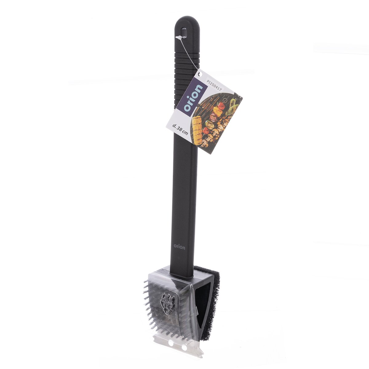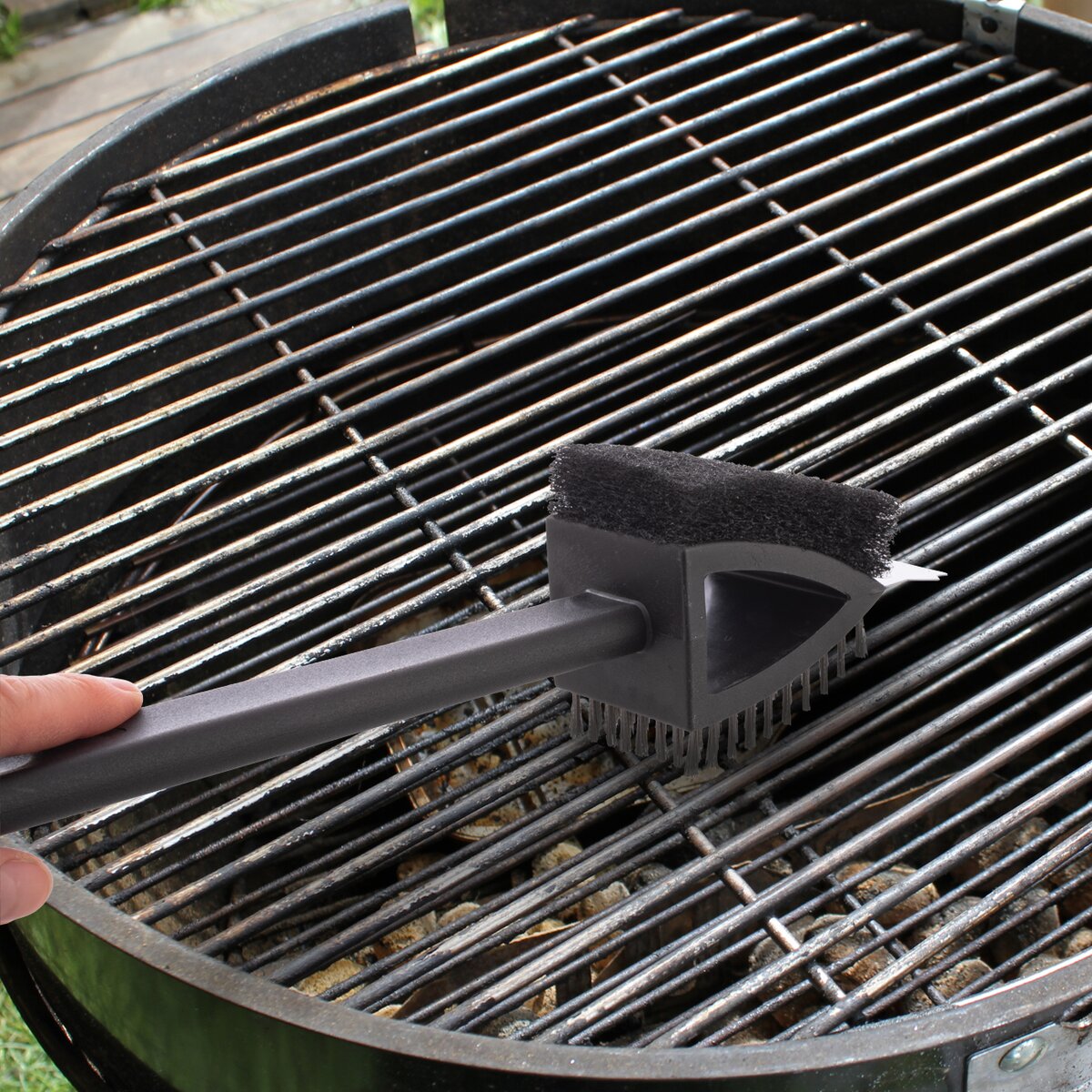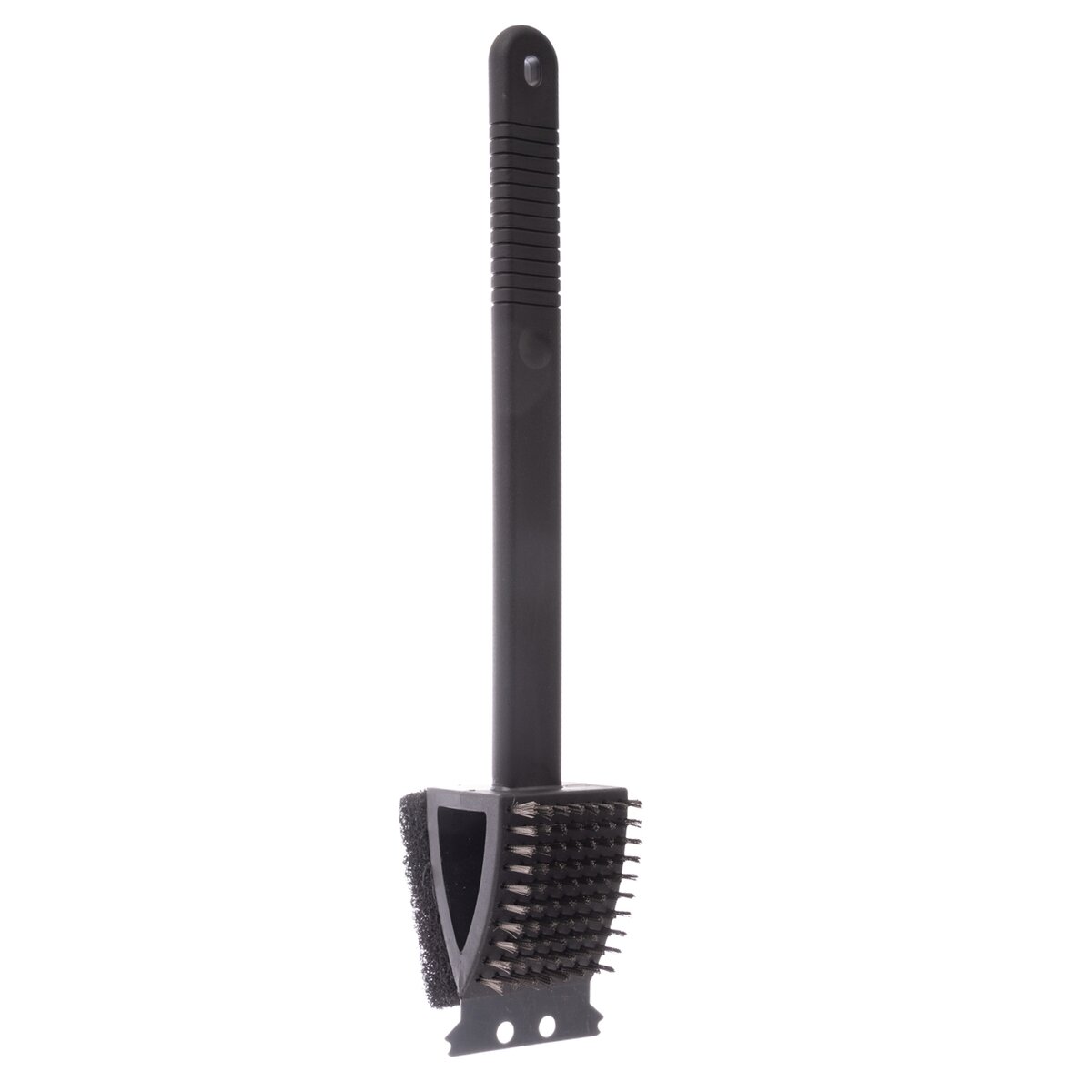 Praktický kartáč na údržbu grilu a grilovací mřížky kombinuje tři účinné nástroje v jednom: