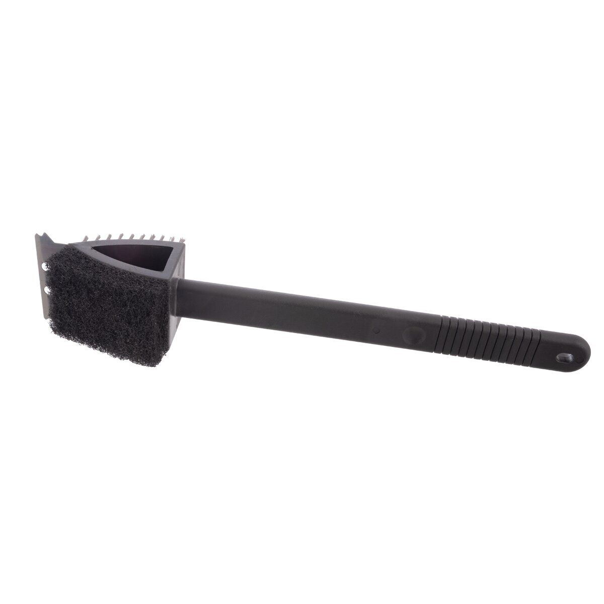 Kód produktu 831732Dlouhý kartáč k údržbě grilu a grilovací mřížky má klasický drátěný kartáč, škrabku s břitem a houbu, kterou lze plochu grilu doleštit.