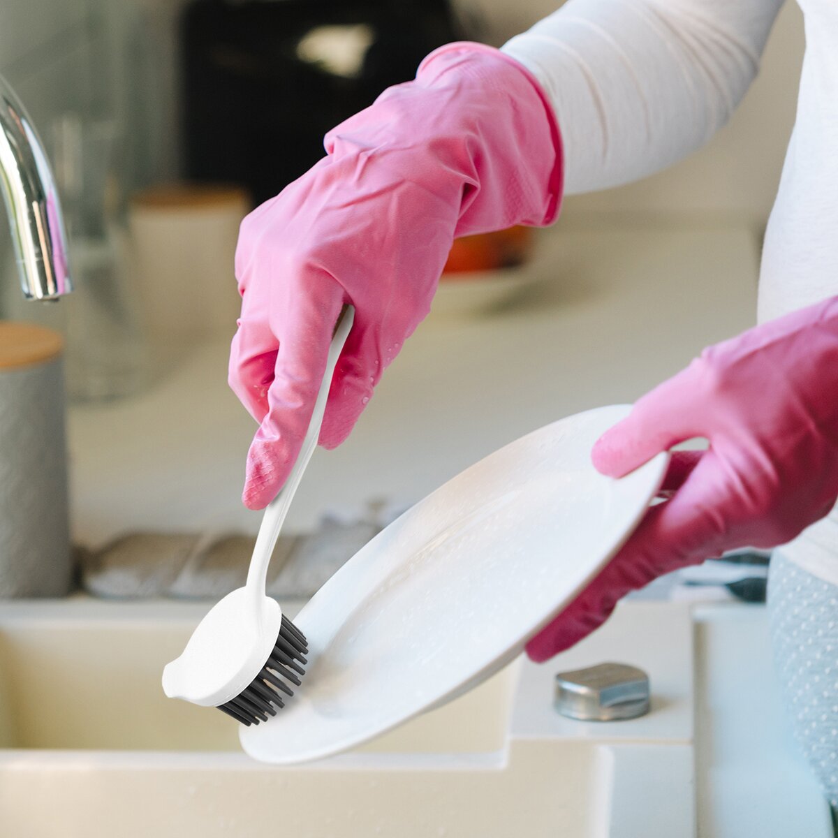 Zvlášť pokud nemáte rádi, když jsou vaše ruce od mytí nádobí úplně vysušené, bude kartáč s dlouhou rukojetí tou správnou volbou. Díky otvoru v rukojeti lze kartáč zavěsit nebo jej opatřit provázkem, za nějž ho lze pod dřezem zavěsit na háček. Lze jej použít i k čištění koupelny, kuchyňského koutu apod.