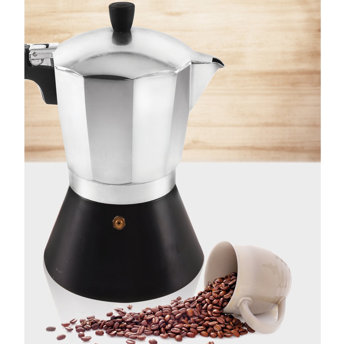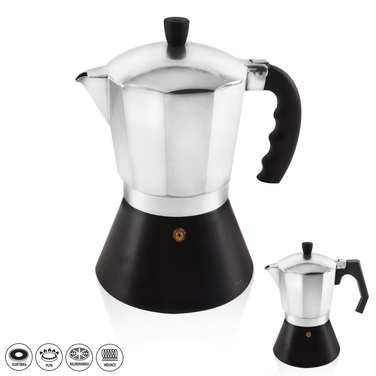 Kód produktu 131920Přetlakový kávovar pro tradiční přípravu italské kávy s vynikajícím aroma. Jedná se také o stylový doplněk interiéru pro všechny milovníky kávy. Má tvarovanou rukojeť, bezpečnostní ventil. Kafetiera je vhodná pro všechny druhy sporáků, včetně indukce. Jednoduše naplníte spodní část kávovaru teplou vodou a vložíte zásobník s kávou, našroubujete vrchní část kávovaru a můžete začít vařit. Tlakem vznikajícím při varu se espresso dostane do horní nádobky a vy můžete nalévat. Těsnění kávovaru je výměnné, 1 náhradní kus je součástí balení. Materiál: zdravotně nezávadný hliník s povrchovou úpravou, držadlo - žáruvzdorný plast, silikonové těsnění. Rozměry: objem 0,5 l, pr. 13 cm, v. 21 cm. Náhradní těsnění v naší nabídce 180535.