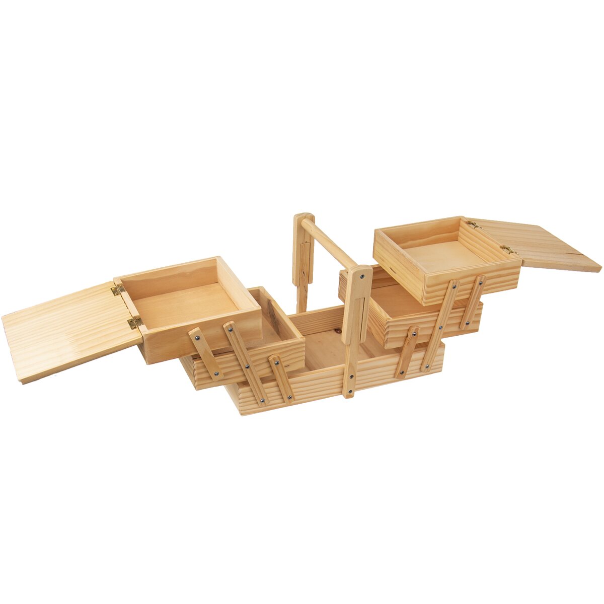 Kód produktu 126030Dřevěný box s výklopným systémem jednotlivých pater do stran je určen k uspořádání různých šicích potřeb a drobných předmětů nejen pro kreativní práci.