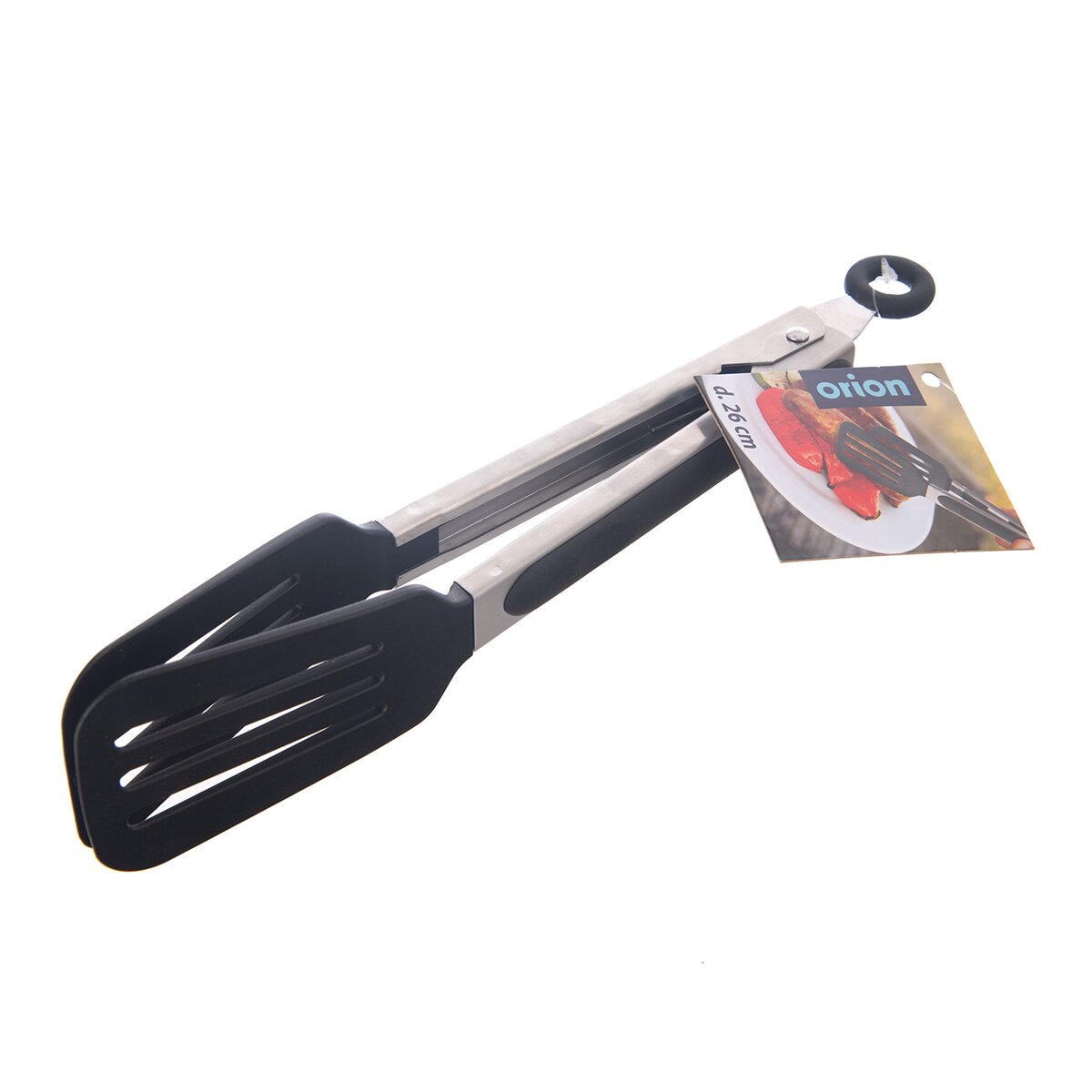 Kód produktu 143913Kovové kleště ve tvaru obracečky využijete v kuchyni k obracení horkých pokrmů v rozpáleném tuku i při grilování, servírování salátů a asijských jídel nebo dekorování pokrmů.