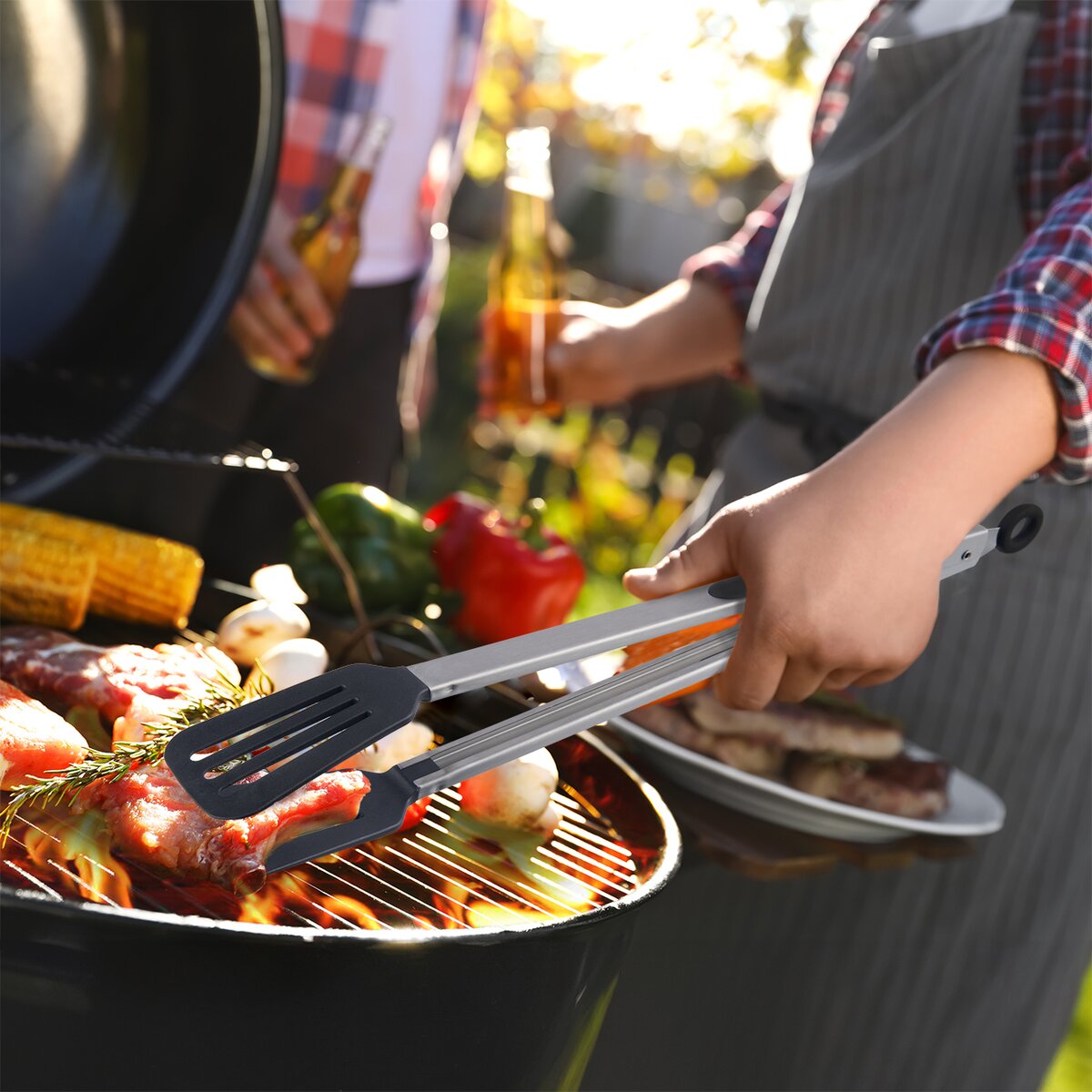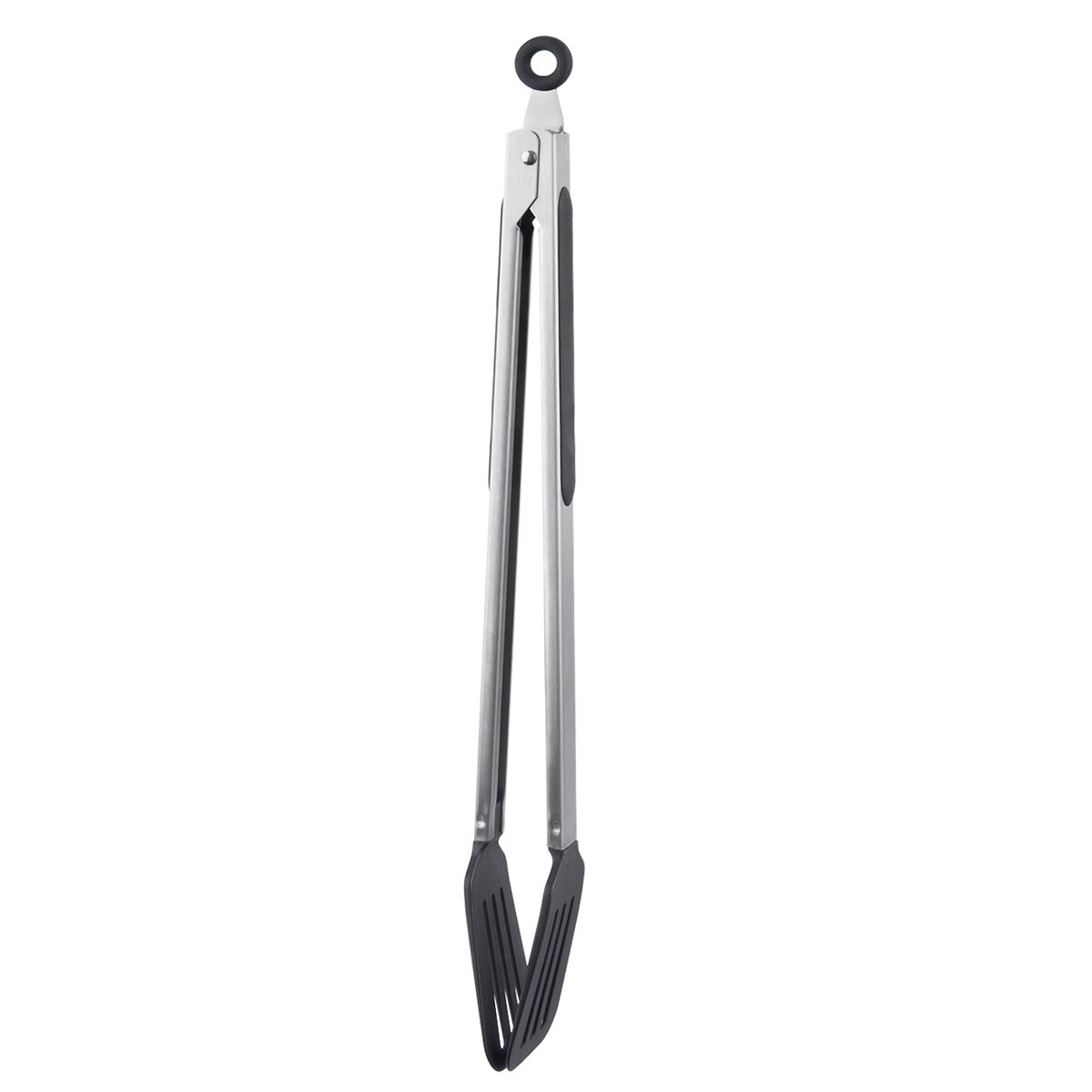 Kód produktu 143914Kleště/obracečka najdou široké uplatnění ve Vaší kuchyni při pečení, smažení, vaření, při servírování a dekorování pokrmů a díky své délce budou ideálním pomocníkem při grilování. Materiál: nerezová ocel, termoplast PBT, termoplastická guma TPR. Lze používat až do teploty +200 °C. Jednoduchou manipulací (vysunutím) závěsného očka dochází k uzavření kleští. Lze mýt v myčce na nádobí. Rozměry: š. 5,5 cm, d. 44 cm.