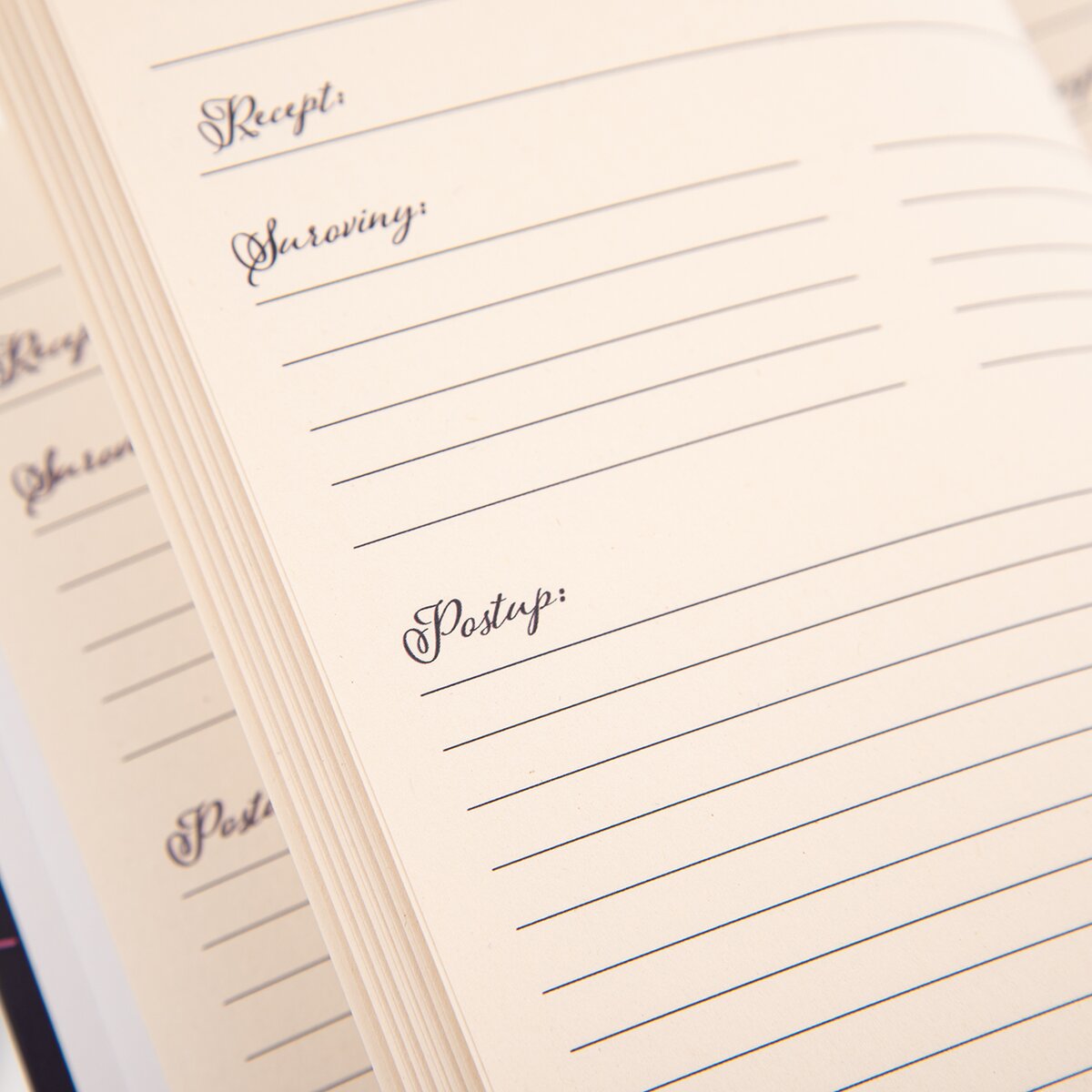 Má 180 předtištěných stran, kam lze psát název receptu, suroviny i postup přípravy. Bude tak krásným dárkem pro všechny, kdo mají rádi podobu ručně psaných kuchařek, nebo jako odkaz pro dceru nebo vnučku, která má za sebou první pokusy uvařit něco dobrého.