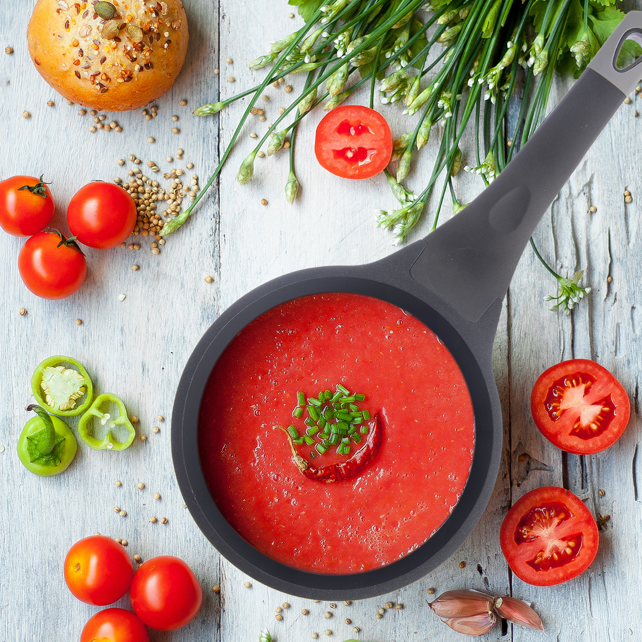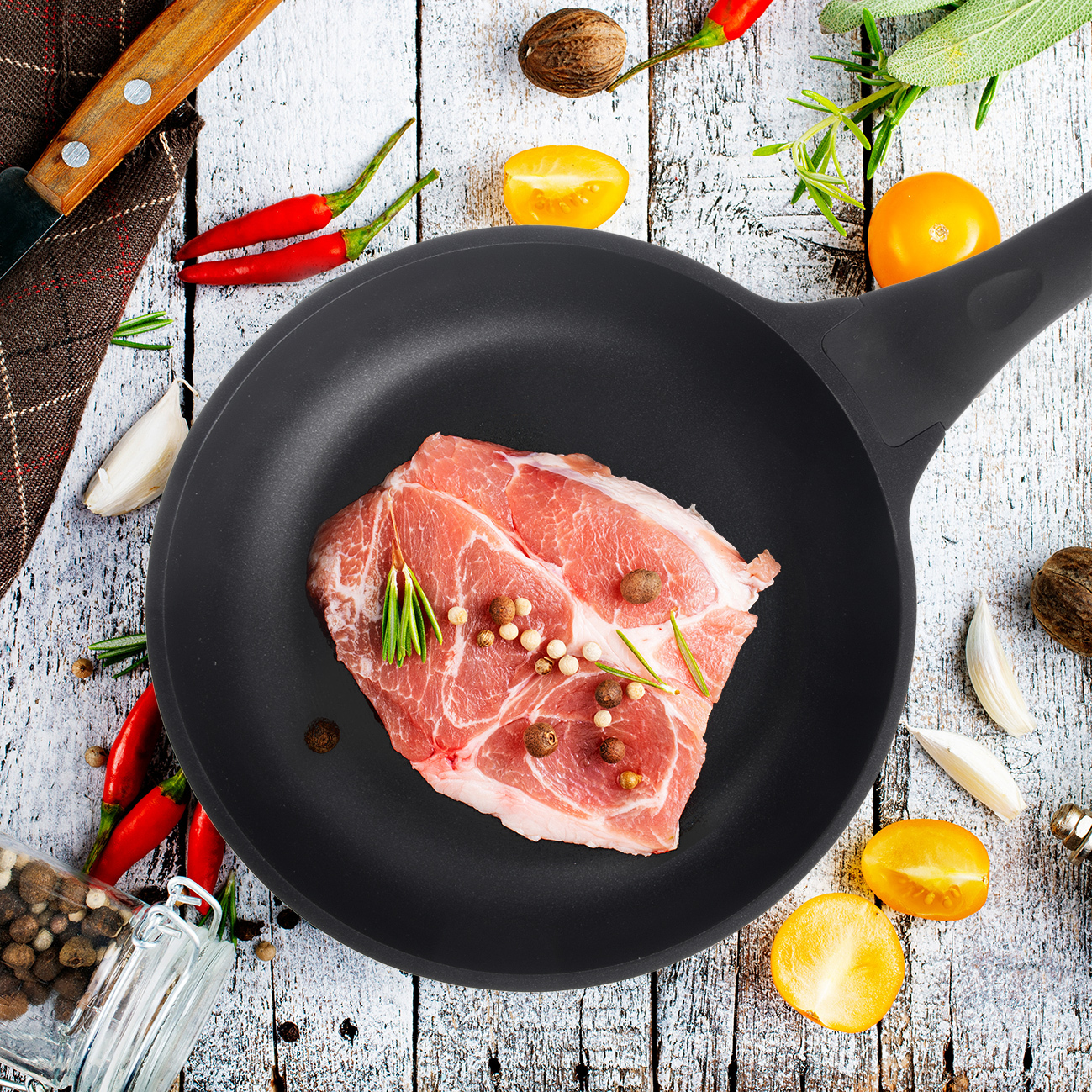 - pánve se hodí k opékání šťavnatých steaků, smažení řízků, dušení zeleniny s minimem tuku i k redukci omáček