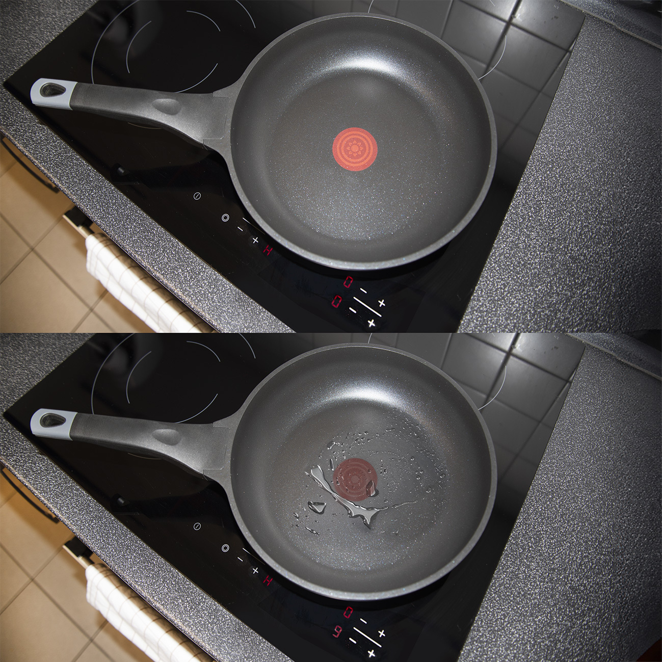 - dno je opatřeno indikátorem teploty, který zahříváním mění barvu a informuje o ideální teplotě pro přípravu pokrmů
