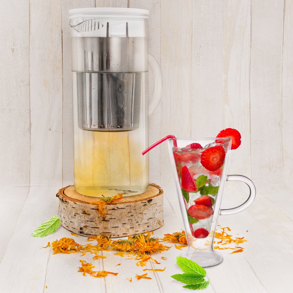 Borosilikátové sklo zvládne rozmení teplot od -20 °C do +180 °C, takže bude skvělým pomocníkem pro přípravu osvěžujícího ledového čaje nebo jeho uložení v chladničce, ale i na servírování horkého čaje nebo svařeného vína.