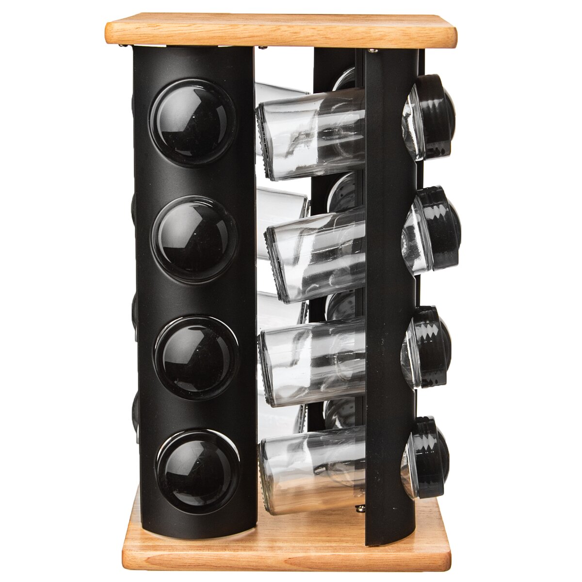 Více informacíDesignový otočný dřevěný stojan s černými nerezovými lištami s otvory, jehož součástí je 16 kusů skleněných kořenek průměru 4,5 cm a výšky 10 cm. Každá má plastové sypátko a černé víčko z PE. Podle vloženého koření nebo dochucovadla tak můžete sypátko ponechat nebo jej odděláte a pohodlně nasypete a vysypete větší kousky, např. nové koření, hřebíček.
