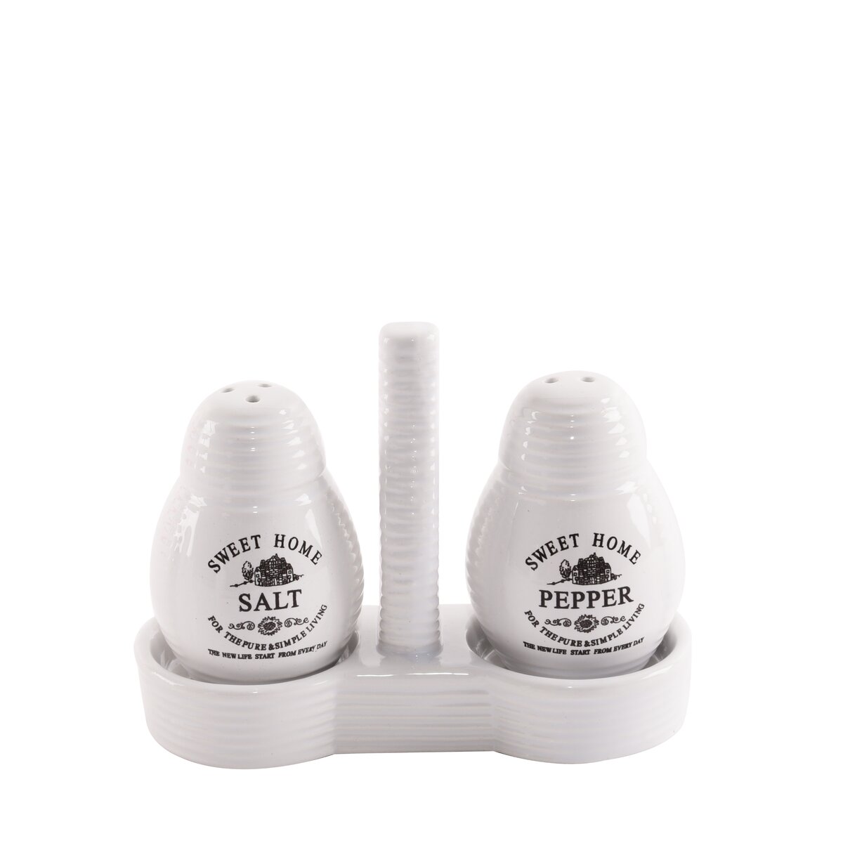 Krásná dochucovací sada z kolekce SWEET HOME. Skládá se ze dvou bílých keramických kořenek, které se výborně hodí na uložení soli a pepře. Nádoby se plní zespodu, po odstranění umělohmotného krytu. Zdobí je jemné vroubkování po celém jejich obvodu a stylový nápis.