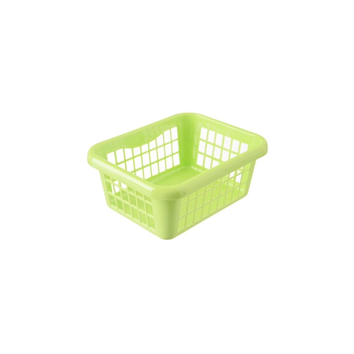 Kód produktu 731167Barevný plastový košík o rozměrech 15,5×12,5×6,5 cm. Slouží k uložení drobných předmětů v domácnosti.