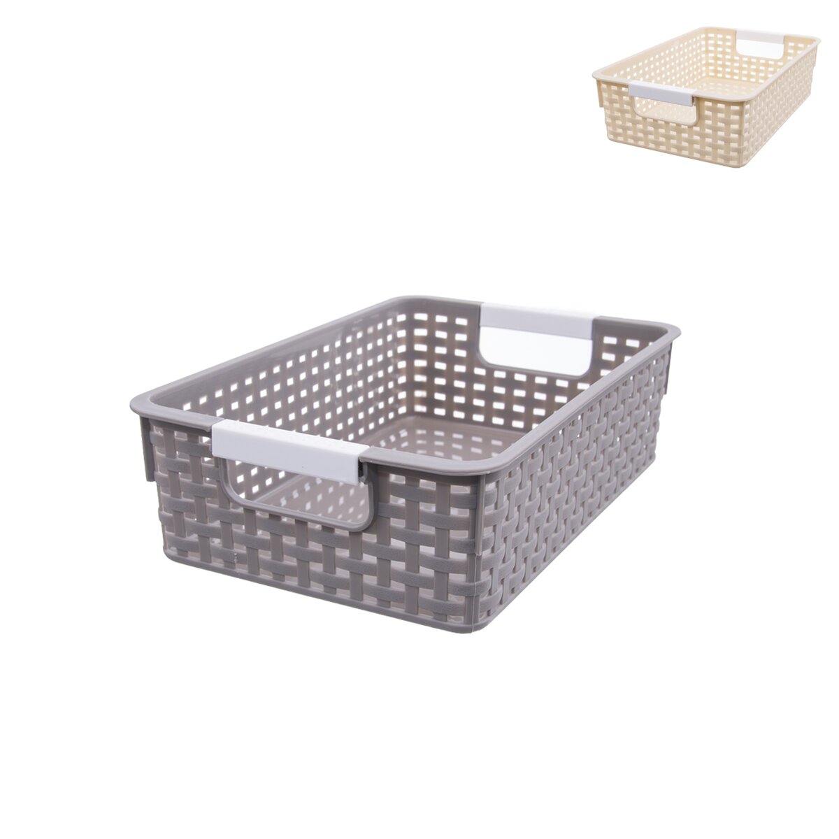 Košík s uchy na uložení různých drobností kdekoli v domácnosti. Materiál: plast. Barevný assort. Rozměry: 30,5x21x8 cm.