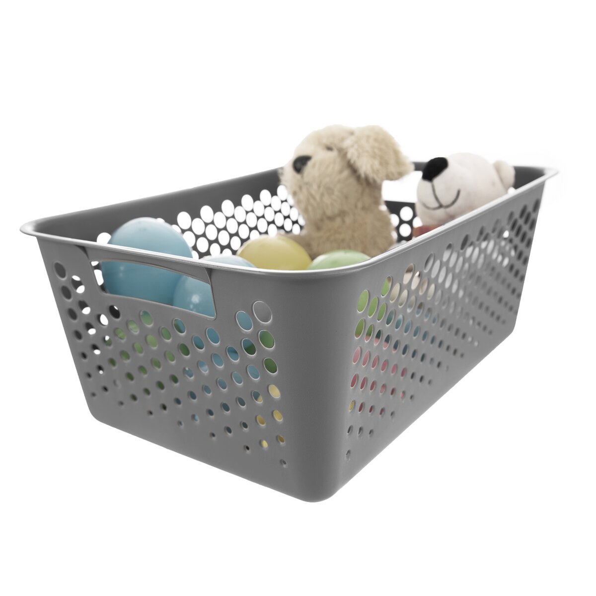 Kód produktu 731614Šedý plastový košík o rozměrech 36,5x25,5x14,5 cm slouží k uložení nejrůznějších předmětů v domácnosti.