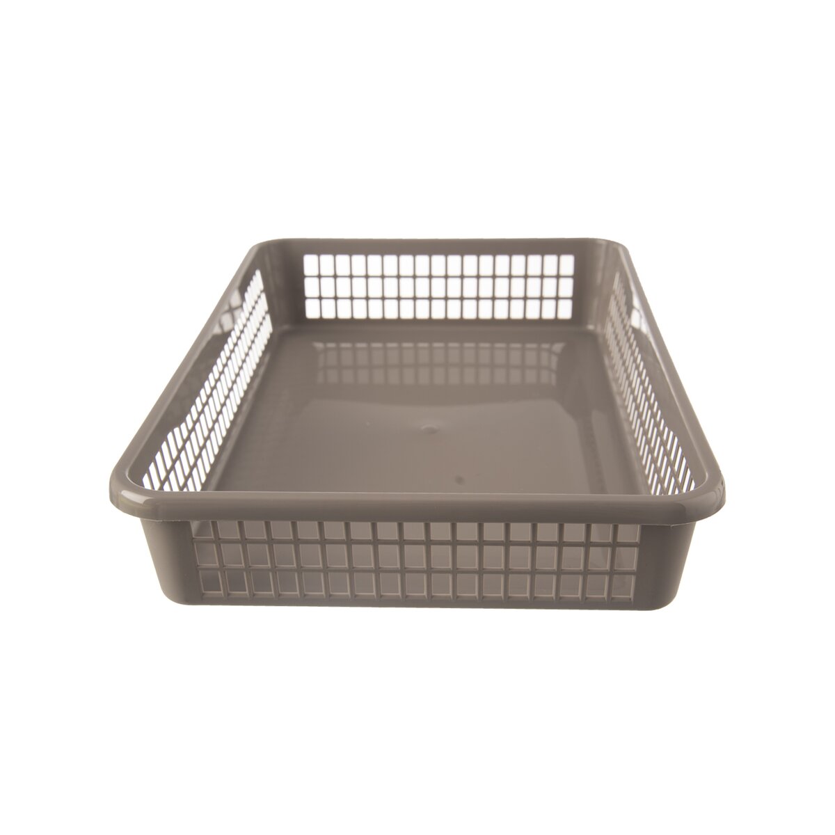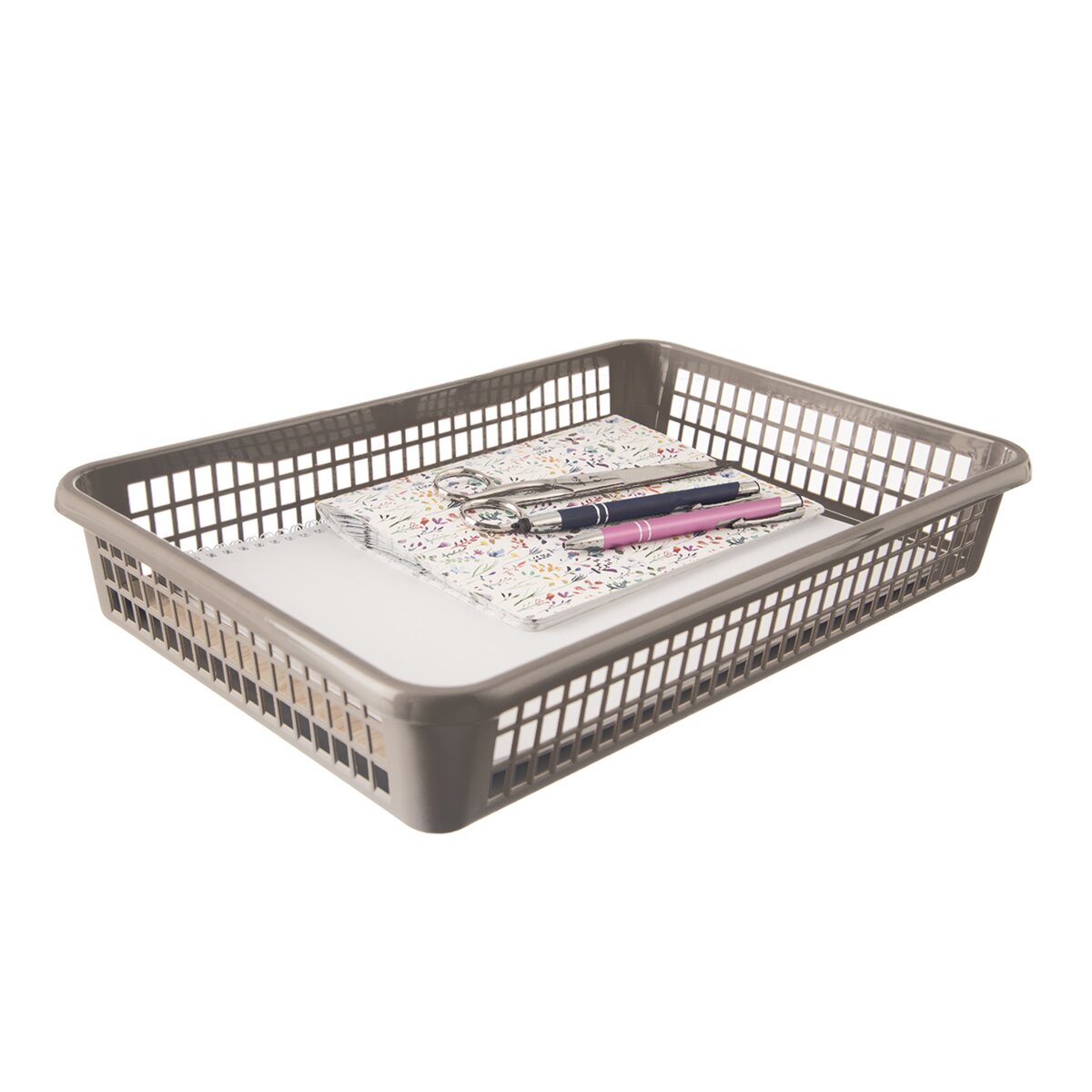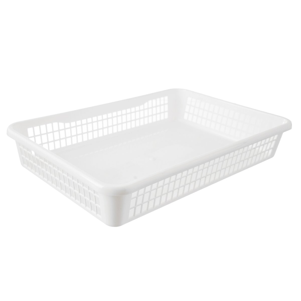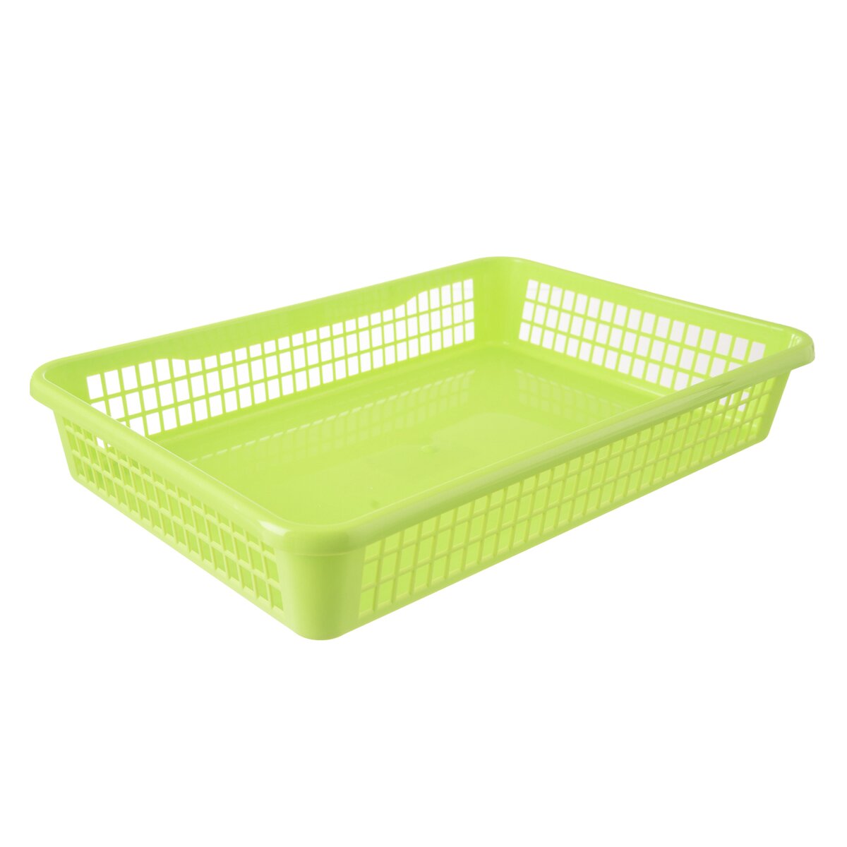 Kód produktu 731170Barevný plastový košík o rozměrech 38,5×25,5×6,5 cm. Slouží k uložení menších předmětů v domácnosti.