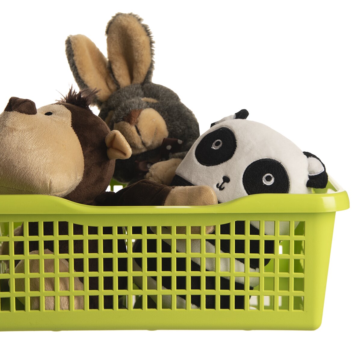 Kód produktu 731144Barevný plastový košík o rozměrech 42×32×17 cm. Slouží k uložení drobných předmětů v domácnosti.