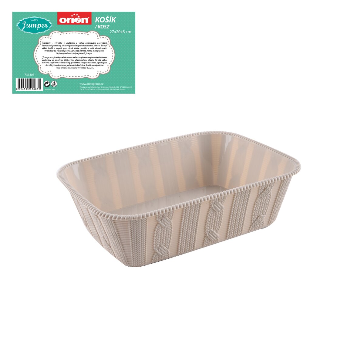 Kód produktu 731303Plastový košík s dekorem pleteniny o rozměrech 27×20×8 cm.