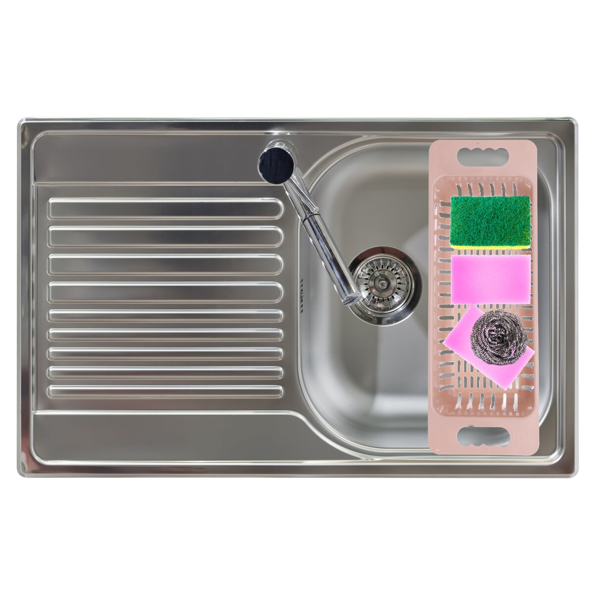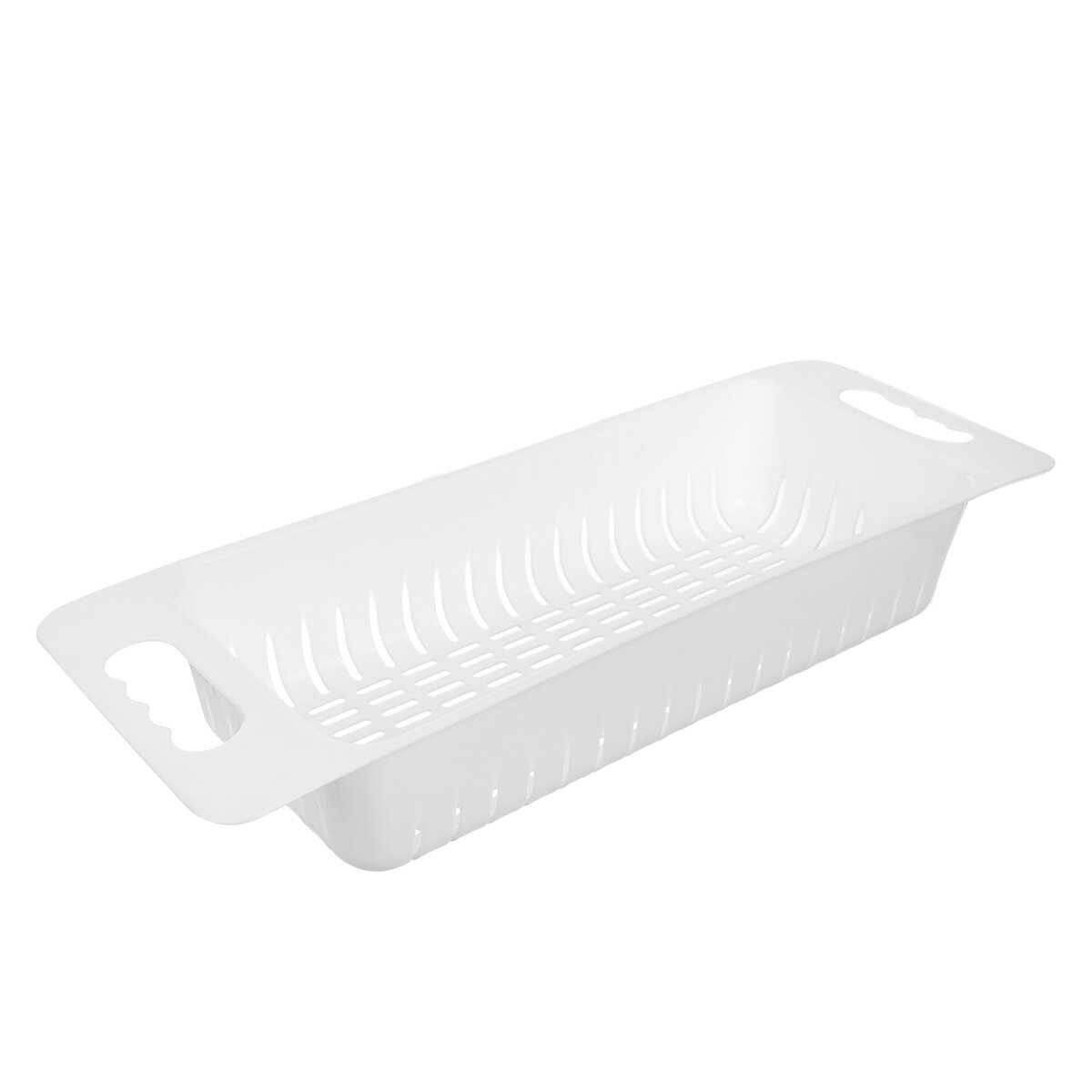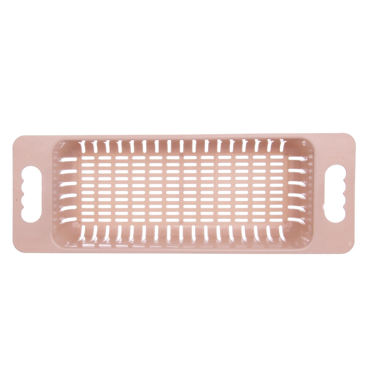 Košík na dřez vyřeší skvěle prostor pro uložení houbičky na nádobí, drátěnky, saponátu, kartáče na nádobí nebo štětky na láhve... Nebudou ležet ve dřezu, rychle proschnou. Můžete ho využít také jako odkapávač pro příbory, hrnek od čaje. Materiál: plast. Assort barev. Rozměry: 46x16,5x8 cm, vnitří d. 35 cm.