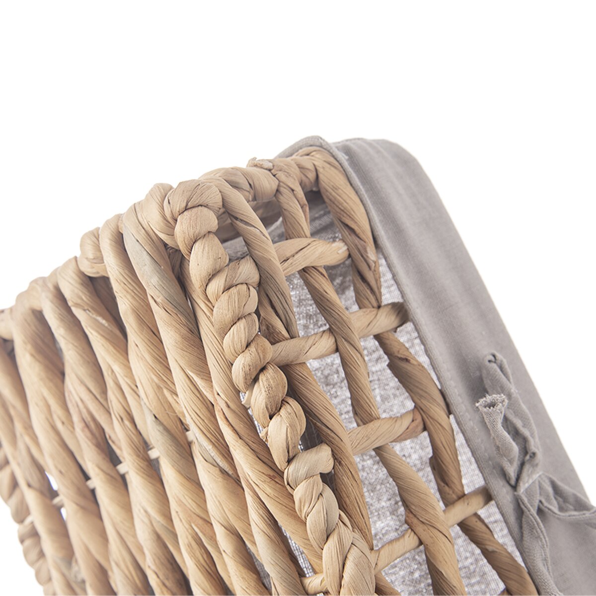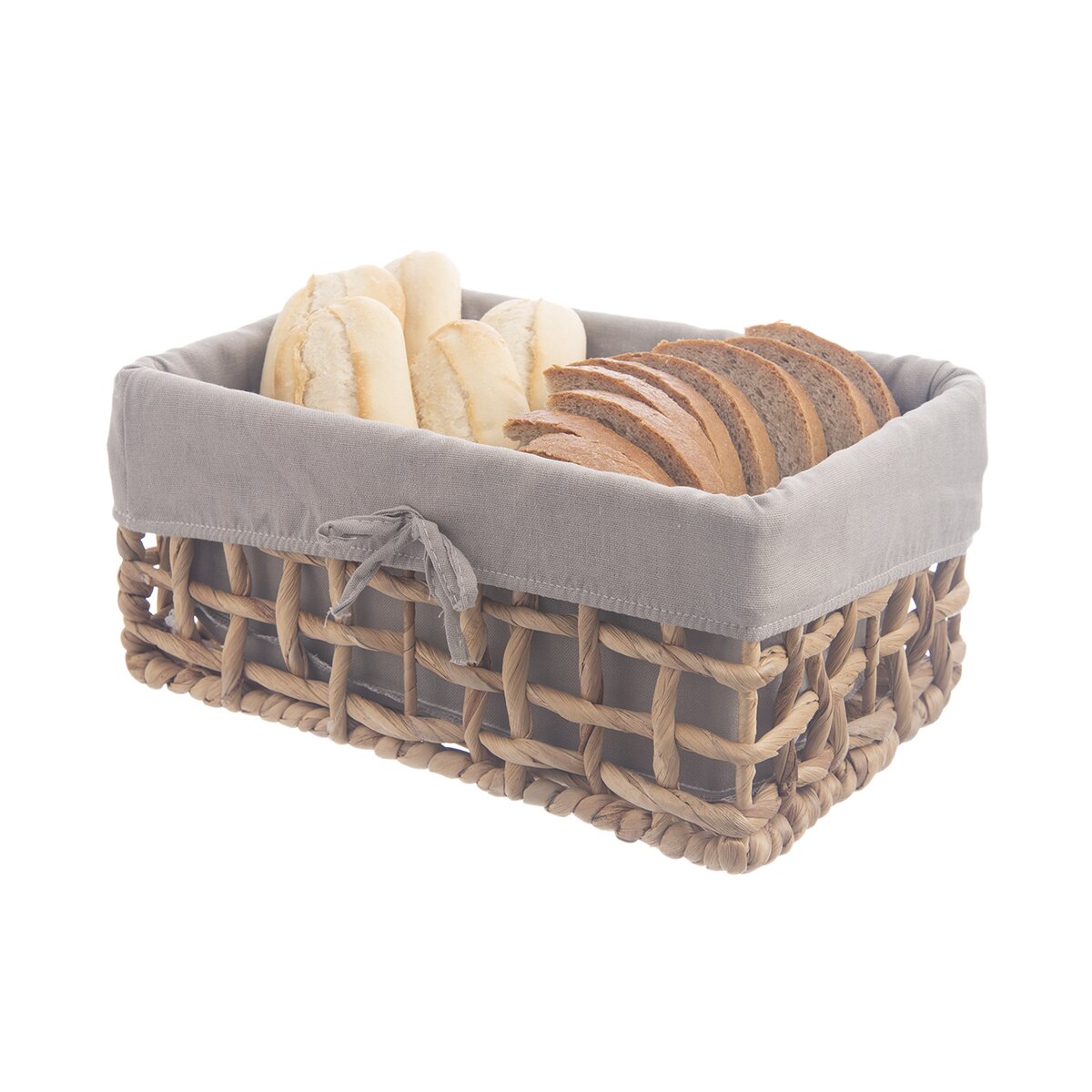 Kód produktu 731626Hranatý košík o rozměru 31x21x14,5 cm z vodního hyacintu je doplněn bavlněnou šedou vsadkou. Vhodný k ukládání a servírování pečiva i k uložení různých drobností nejen v domácnosti.