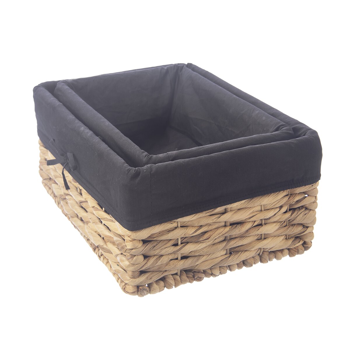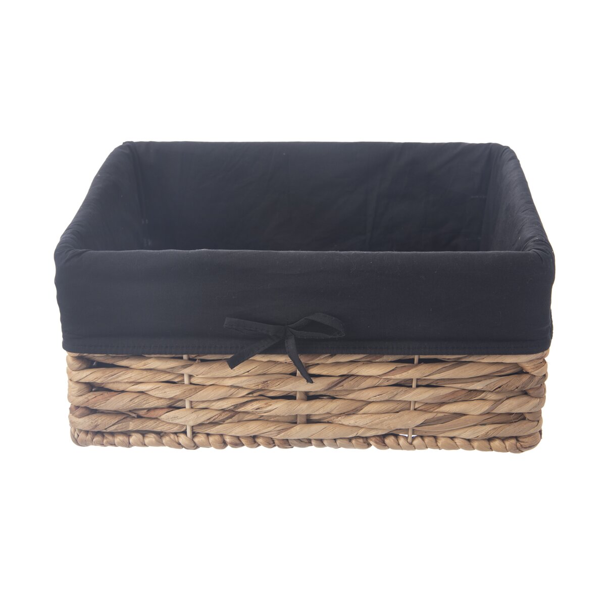 Kód produktu 731628Hranatý košík o rozměru 36x26x16,5 cm z vodního hyacintu je doplněn bavlněnou černou vsadkou. Vhodný k ukládání a servírování pečiva i k uložení různých drobností nejen v domácnosti.
