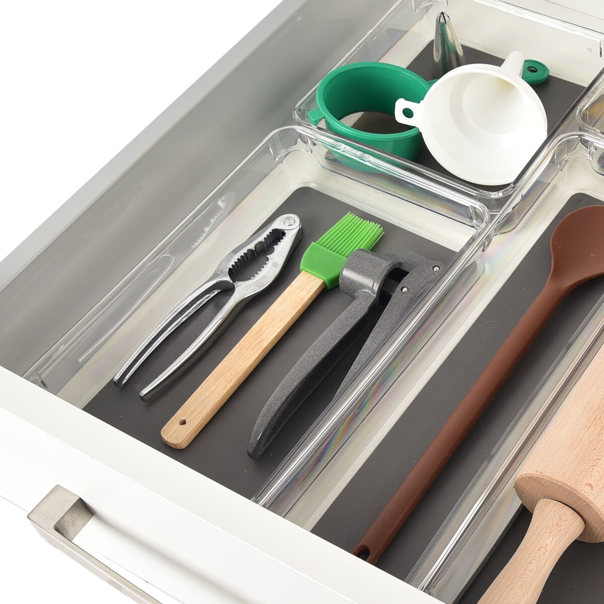 Velmi praktické jsou protiskluzové nožičky a vnitřní odnímatelná vložka na dně organizéru. V naší nabídce najdete několik velikostí a tvarů. Sami si sestavíte potřebný počet různě velkých a tvarově odlišných organizérů podle velikosti zásuvky či jiného úložného prostoru.