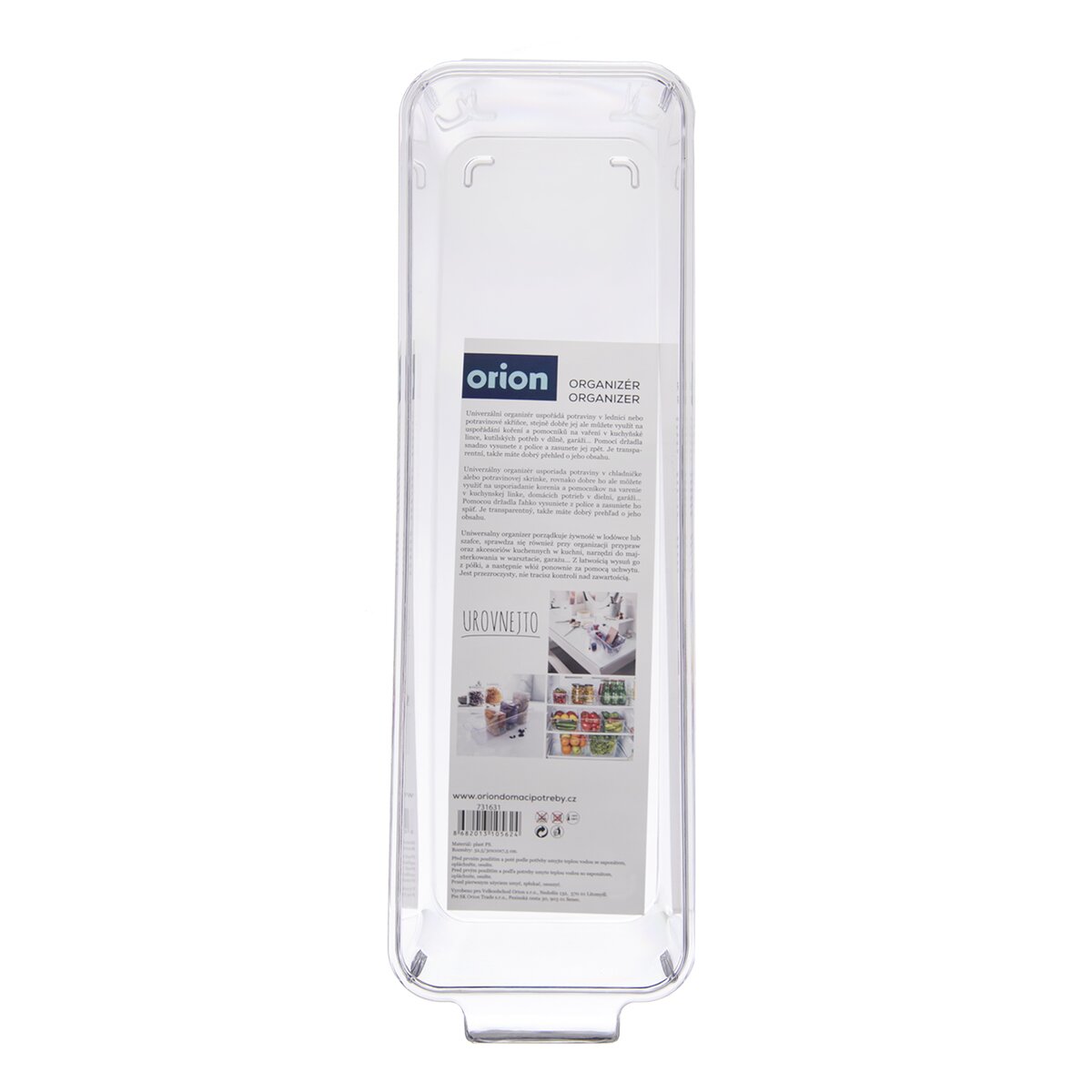 Kód produktu 731631Transparentní plastový košík/organizér o velikosti 32,5x10x7,5 cm pomůže přehledně uložit a uspořádat potraviny v ledici, ale i různé předměty a pomocníky v zásuvkách i jiných úložných prostorách.