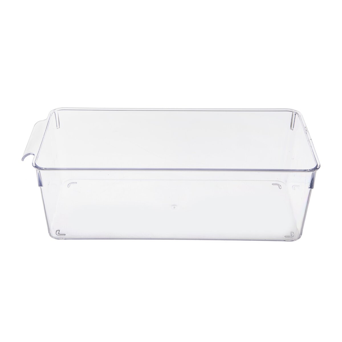Kód produktu 731632Transparentní plastový košík/organizér o velikosti 32,5x14,8x10 cm pomůže přehledně uložit a uspořádat potraviny v ledici, ale i různé předměty a pomocníky v zásuvkách i jiných úložných prostorách.
