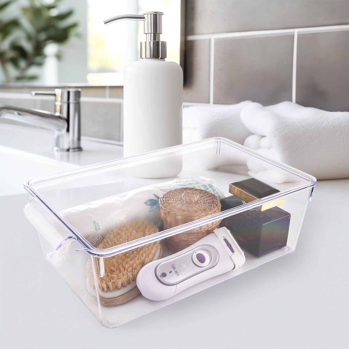 Pomocí držadla jej snadno vysunete z police a zasunete zpět. Je transparentní, o velikosti 30x20x7 cm (s držadlem délky 32,5 cm), takže máte dobrý přehled o jeho obsahu.