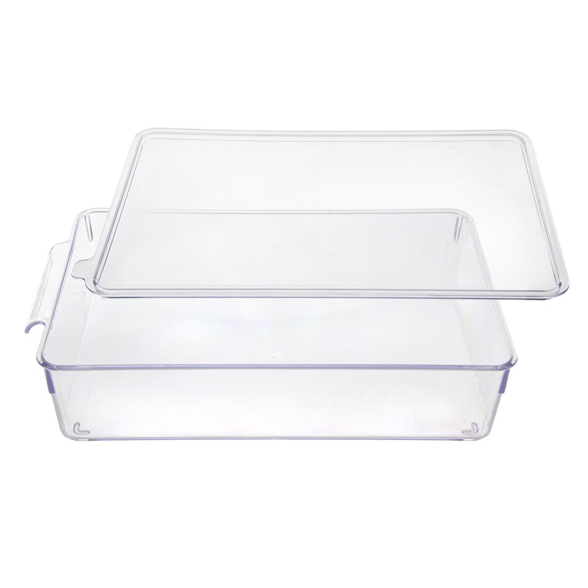 Kód produktu 731633Transparentní plastový košík/organizér s víčkem, o velikosti 32,5x20x7 cm, pomůže přehledně uložit a uspořádat potraviny v ledici, ale i různé předměty a pomocníky v zásuvkách i jiných úložných prostorách.