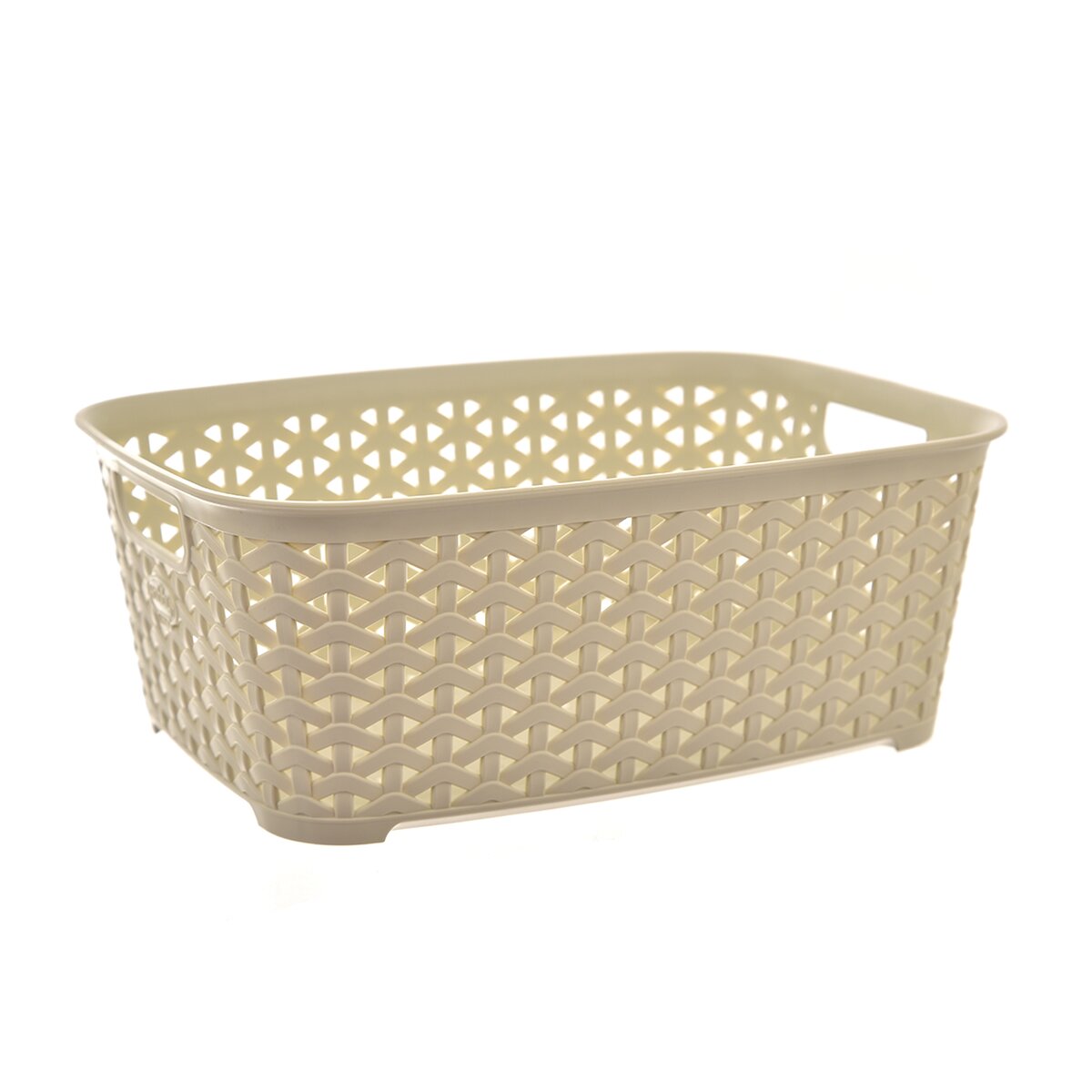 Kód produktu 731603Krémový plastový košík RATAN hranatého tvaru, doplněný dvěma uchy.